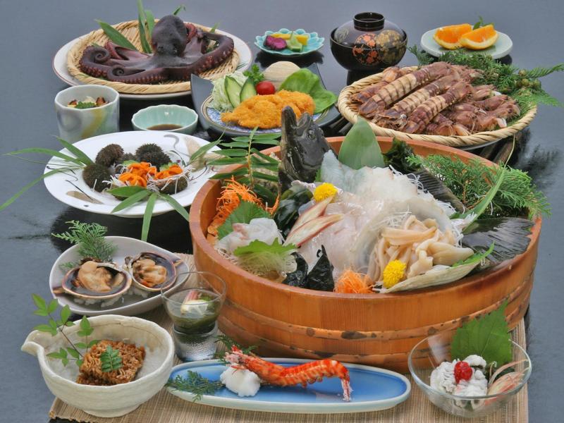 Ubicado en la parte sureste de la isla de Himaka, este hotel ofrece magníficas vistas de la bahía de Mikawa y la bahía de Ise, extendiéndose hasta la península de Atsumi, que parece un jardín en miniatura, tanto desde las habitaciones como desde los amplios baños. Disfruta de mariscos frescos capturados en las aguas adyacentes, con especialidades como pulpo, camarones y pez globo durante el invierno (desde finales de octubre hasta marzo).