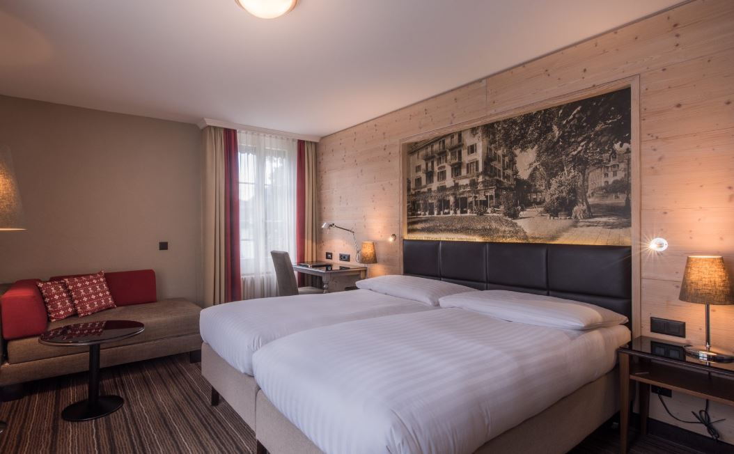 El Hotel Interlaken está situado en el corazón de Interlaken, a solo 5 minutos a pie del centro de congresos y la estación de tren del Este. Este hotel de 4 estrellas ocupa un edificio del siglo XIV renovado con mimo y se encuentra junto a los jardines japoneses. Las habitaciones del Hotel Interlaken disponen de conexión a internet por cable y WiFi gratuita, TV por cable, caja fuerte y escritorio. El desayuno se sirve a diario. El restaurante Taverne permanece abierto todos los días de verano y propone especialidades suizas e internacionales. El Kloster Lounge & Bar abre de martes a sábado a partir de las 17:00.