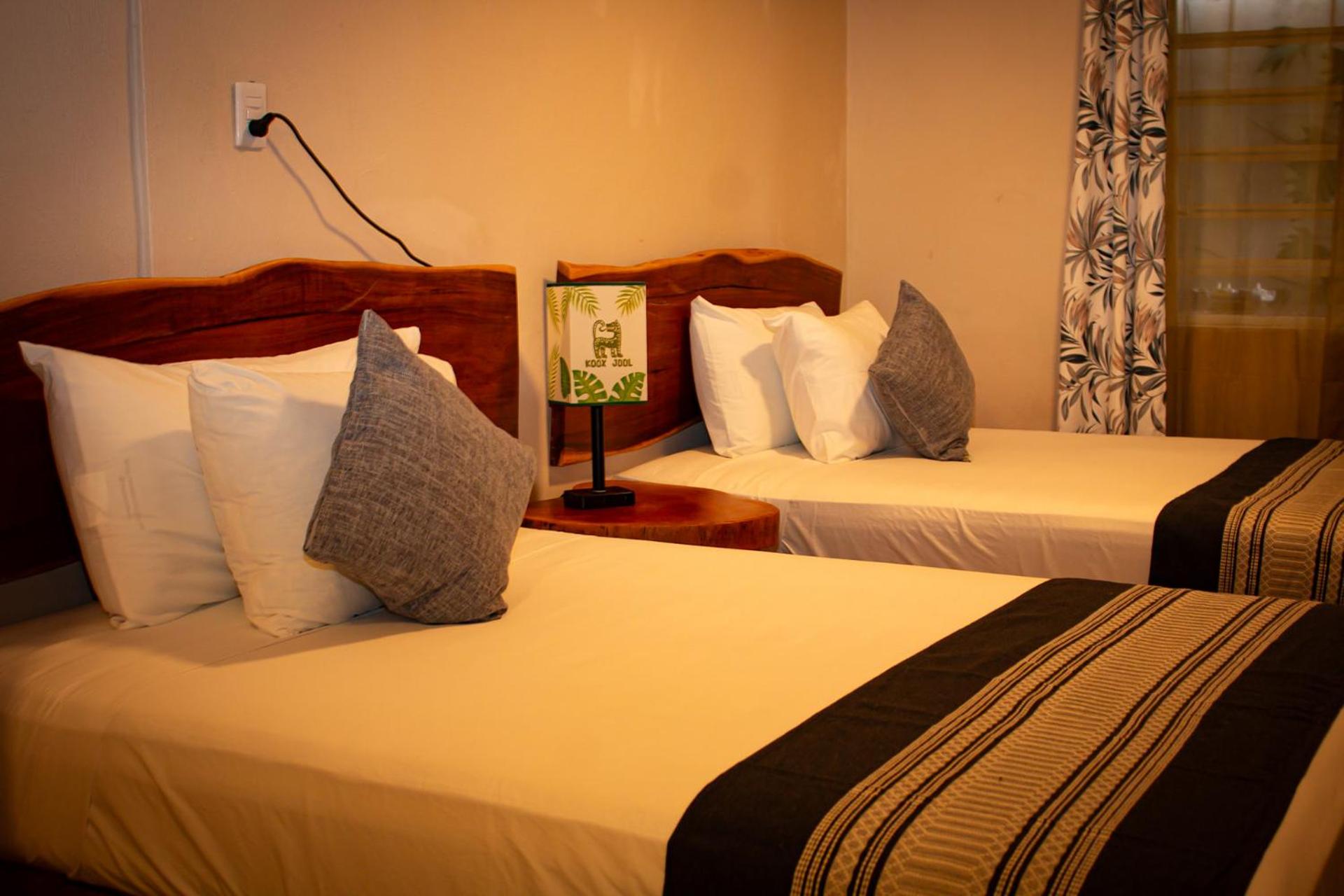 Facilities and services include a reception area, a bar, free Wi-Fi, a garden, and a restaurant. Rooms are equipped with free Wi-Fi, air-conditioning, clothes rack, private bathroom, free toiletries, toilet, bath or shower, toilet paper, and towels.Address: Av.3 Esquina Calle 30 Col. Mario Villanueva, 77935 Bacalar, Mexico