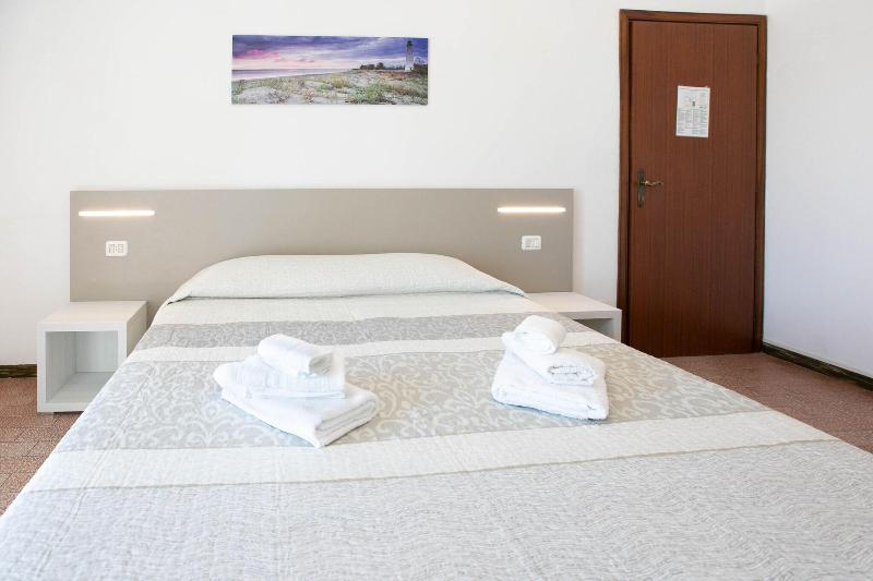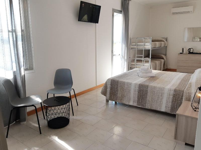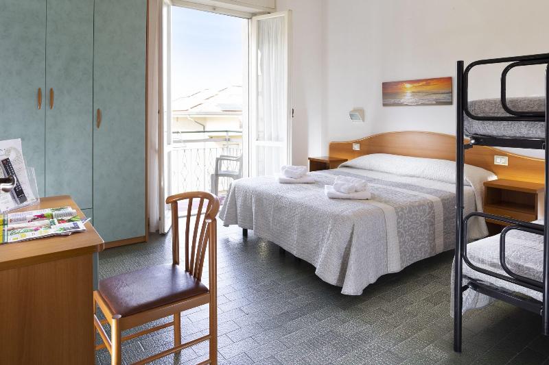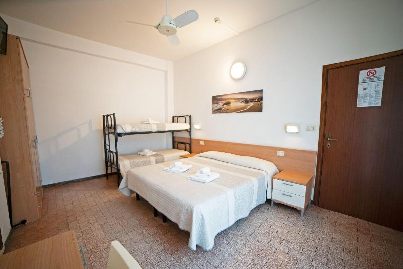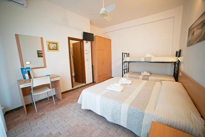 El hotel es básico pero maravilloso! Nuestra habitación tenía cama doble y literas, armario, nevera, caja fuerte, escritorio, silla, puertas que daban a un balcón con dos sillas, persianas opacas...