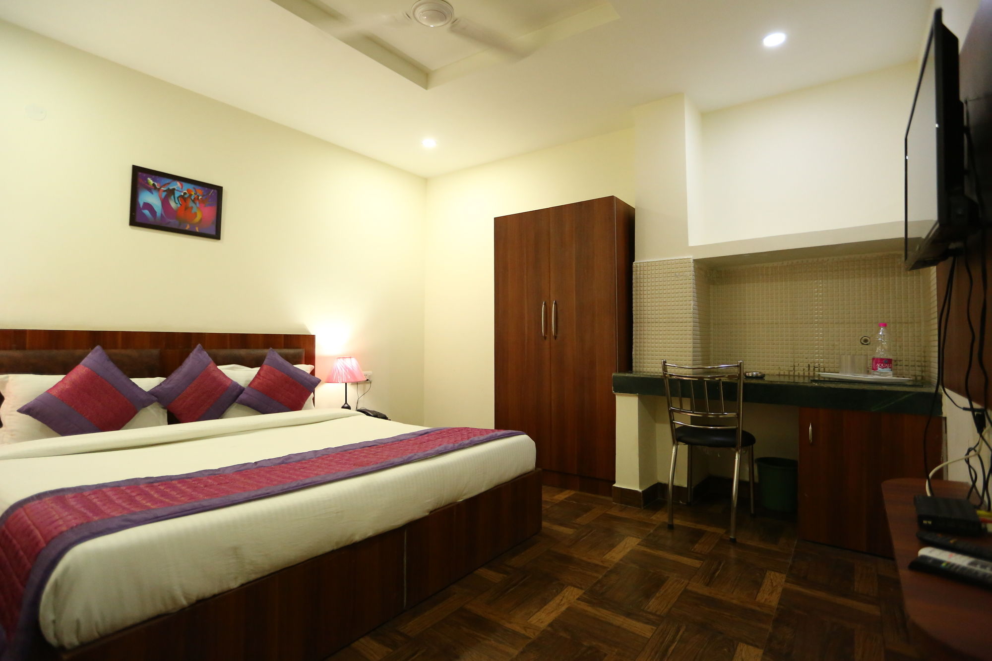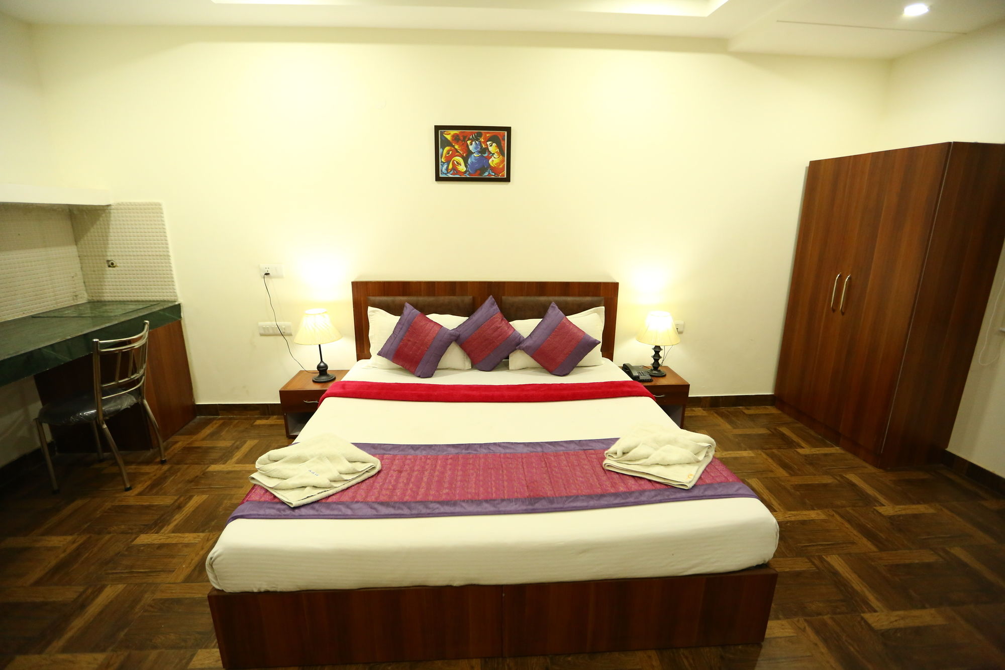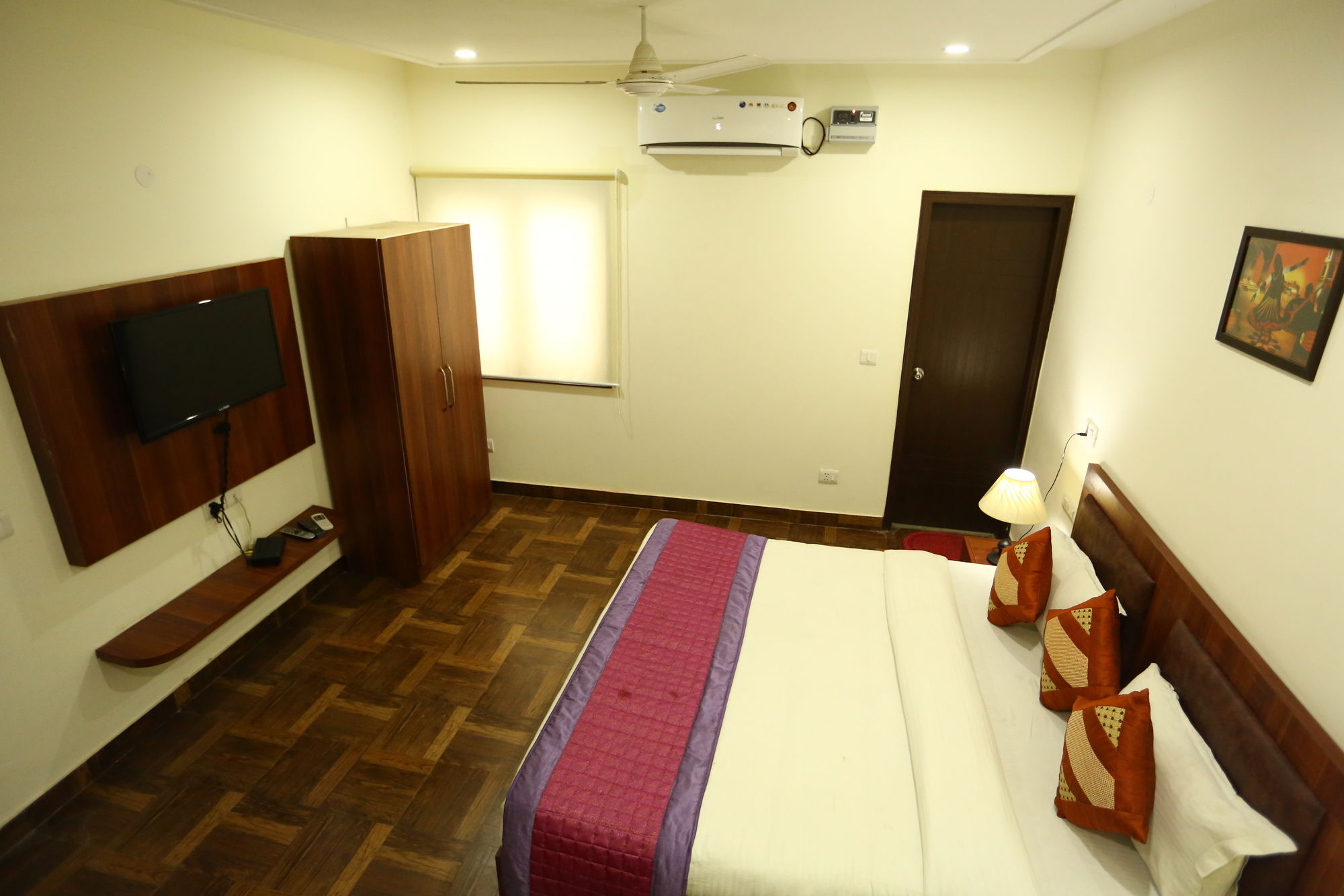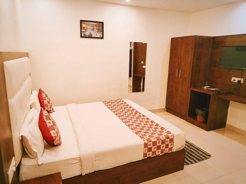 Si te alojas en Hotel Marina, en Nueva Delhi (Mahipalpur), estarás a poca distancia de DLF Emporio Vasant Kunj y Universidad Jawaharlal Nehru. Este hotel se encuentra cerca de Malai Mandir y de Hospital Fortis.Habitaciones Reserva una de las 15 habitaciones climatizadas, todas equipadas con chimenea y televisor de pantalla plana. La cocina privada te permite prepararte tus propias comidas. Para los momentos de ocio, tienes un televisor con canales por cable y conexión a Internet por cable y wifi gratis. Las comodidades incluyen caja fuerte y escritorio, además de un servicio de limpieza disponible todos los días.Servicios Apreciarás las instalaciones de ocio, que incluyen discoteca, gimnasio y bicicletas de alquiler. Este hotel de estilo art decó ofrece además conexión a Internet wifi gratis, servicios de conserjería y servicio de canguro gratuito. Recorre rápida y cómodamente las principales atracciones de la zona gracias al servicio de transporte (de pago).Para comer Tienes un restaurante y una cafetería a tu disposición para comer algo, pero si lo prefieres, puedes llamar al servicio de habitaciones las 24 horas de este hotel. Mientras te das un chapuzón puedes pedir tu bebida favorita en el bar de la piscina.Servicios de negocios y otros Tendrás conexión a Internet de alta velocidad por cable (gratuita), centro de negocios abierto las 24 horas y periódicos gratuitos en el vestíbulo a tu disposición. Pagando un pequeño suplemento podrás aprovechar prestaciones como servicio de transporte al aeropuerto (ida y vuelta) (disponible las 24 horas) y aparcamiento con asistencia gratuito.