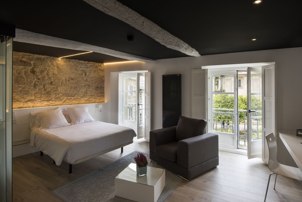 Es una casa del siglo XIX totalmente rehabilitada con un estilo clásico-moderno, con toques minimalistas conservando la piedra natural. Situado entre la Rúa do Vilar, una de las calles más céntricas de la ciudad donde se encuentra la Oficina del Peregrino, y la Plaza de Fonseca donde está el Pazo...