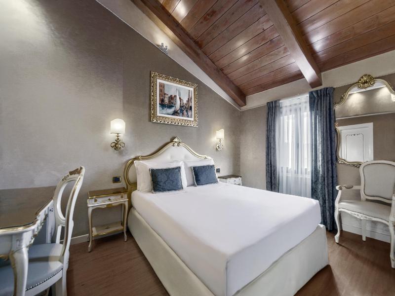 El Hotel Olimpia Venice, un hotel BW Signature Collection, goza de una ubicación céntrica en un pintoresco canal veneciano, cerca de la Basilica dei Frari (y la Scuola Grande di San Rocco) y a un corto paseo del Gran Canal. Su práctica ubicación cerca de Piazzale Roma y la estación de tren ofrece fácil acceso a quienes llegan en coche, avión, tren o crucero, lo que simplifica el transporte de equipaje. Disponemos de aparcamiento con reserva previa. Recientemente renovado, el hotel ofrece atractivas comodidades, como una sala de lectura, bar, acceso a internet y un encantador jardín, una verdadera rareza en Venecia. Disfruta del desayuno en una luminosa sala con vistas al canal. Las habitaciones presentan una decoración clásica veneciana y cuentan con baño privado con ducha/bañera, secador de pelo, aire acondicionado, teléfono, televisión por satélite, radio y minibar.