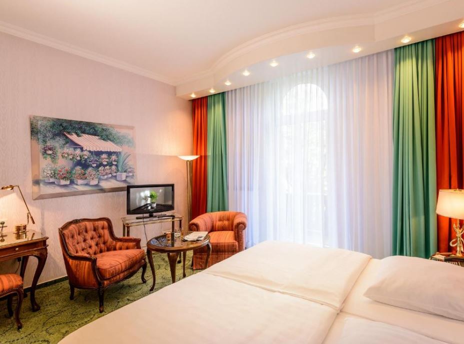 El Hotel Palmenhof dispone de habitaciones y suites amplias con TV vía satélite, escritorio moderno y baño elegante.