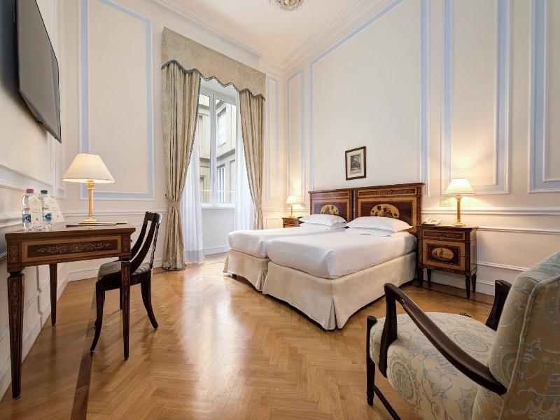 El elegante Hotel Quirinale se encuentra en el corazón del centro de Roma, a poca distancia en coche de la Plaza de España y la Scalinata di Spagna. Este hotel ofrece 210 habitaciones equipadas con frigorífico, televisores de pantalla plana con canales por satélite y wifi gratuito. Los baños privados incluyen combinación de ducha/bañera, artículos de aseo gratuitos y bidé. Los huéspedes pueden disfrutar de las instalaciones del hotel, como un gimnasio, jardín, restaurante con servicio de habitaciones, bar/salón y servicios de conserjería. El hotel también dispone de un centro de conferencias y salas de reuniones, ideales para eventos.