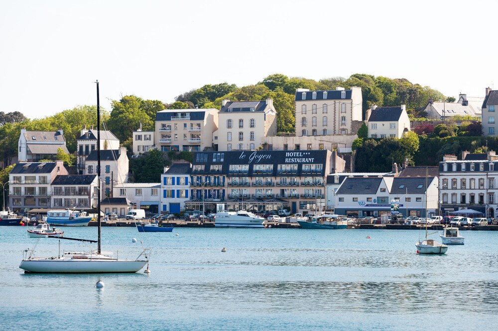 A 35 km de Quimper, el Hotel Le Goyen, Audierne anclados en los muelles es el punto de partida ideal para explorar Cornwall, Cabo Sizun, Finisterre y el sur de Bretaa.Un lugar para descubrir el tiempo de un fin de semana, una pareja o una escapada con amigos o familiares.Los pocos afortunados que se quedan en este mgico lugar, sin duda, descubrir algunos sitios que lo han hecho famoso. Pointe du Raz Pointe du Van, a la baha de los difuntos, los paisajes naturales son de una belleza impresionante.Las habitaciones con balcn en 3 plantas, que ofrecen una magnfica vista del pequeo puerto pesquero de Audierne y la vida marina. Djate seducir por nuestro pequeo hotel de encanto y carcter en Bretaa!