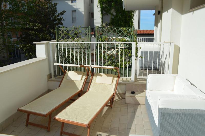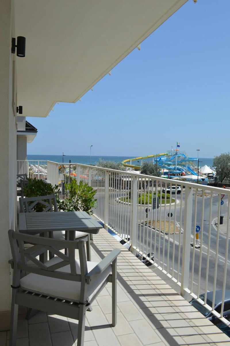 Disfruta de vistas al jardín y a la terraza en el Hotel Riva e Mare, ubicado en el distrito de Rivabella en Rímini. El hotel ofrece wifi gratis, servicio de conserjería y un área de pícnic. Hay un bar y servicio de habitaciones disponibles, y se sirve un desayuno continental gratuito todos los días de 8:00 a 10:00. Las 18 habitaciones cuentan con refrigerador, TV de pantalla plana con programación digital, baño privado con ducha y artículos de tocador gratuitos, caja fuerte y cortinas opacas. El hotel también ofrece consigna de equipaje y una caja fuerte en la recepción. Hay estacionamiento limitado disponible en el hotel. Entre las atracciones cercanas se incluyen el parque acuático Arenas (0, 1 km) y el puerto deportivo de Rímini (2, 2 km). El Aeropuerto Internacional Federico Fellini (RMI) está a 11, 8 km de distancia. Al alojarte en el Hotel Riva e Mare, estarás a 5 minutos en coche del centro de exposiciones Rimini Fiera y de Italia en Miniatura, a 3, 2 km de la playa de Rímini y a 5 km del Palacongressi di Rimini.