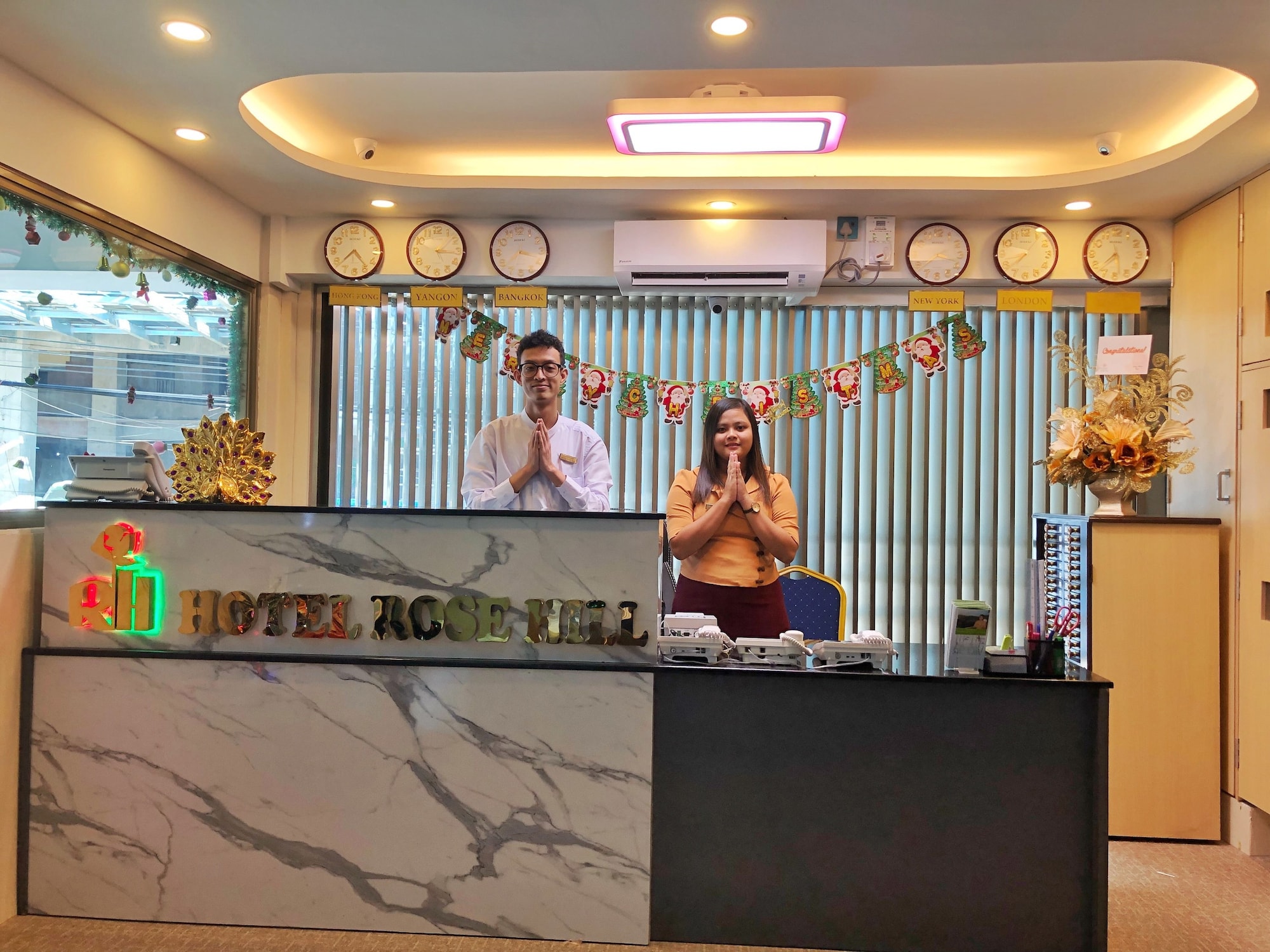 Si te alojas en Hotel Rose Hill, en Yangn (rea del lago Kandawgyi), podrs llegar fcilmente a Palacio de Karaweik y a Pagoda de Shwedagon. Este hotel se encuentra cerca de Parque Natural Kandawgyi y de Lago Kandawgyi. Te sentirs como en tu propia casa en cualquiera de las 49 habitaciones con aire acondicionado, minibar y televisor LCD. Mantn el contacto con los tuyos gracias a la conexin a Internet wifi gratis. El bao privado est provisto de artculos de higiene personal gratuitos y secador de pelo. Entre las comodidades, se incluyen caja fuerte, escritorio y telfono. Aprovecha los prcticos servicios que se te ofrecen, como conexin a Internet wifi gratis, un televisor en la zona comn o asistencia turstica (adquisicin de entradas). Tendrs peridicos gratuitos en el vestbulo, tintorera o lavandera y un servicio de recepcin las 24 horas a tu disposicin. Hay un aparcamiento sin asistencia gratuito disponible.