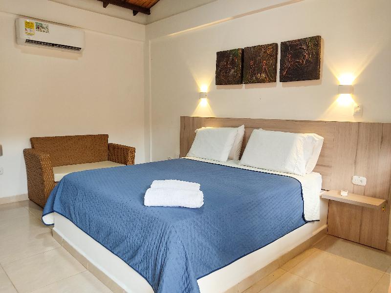 Nuestras habitaciones están equipadas con aire acondicionado, baño privado y desayuno incluido para comenzar el día con energía. Ofrecemos piscina al aire libre, conexión Wi-Fi gratuita, parqueadero privado y una quebrada natural cercana que invita a la relajación y el contacto con la naturaleza.
