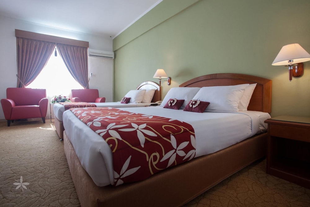 Si eliges Hotel Seri Malaysia Kuala Terengganu en Kampung Panglima, estarás a pocos minutos de Ho Ann Kiong y Pasar Payang. Este hotel se encuentra cerca de Central Market y de Zainal Abidin Mosque.Habitaciones Te sentirás como en tu propia casa en una de las 135 habitaciones con aire acondicionado, frigorífico y minibar. El baño privado con ducha está provisto de artículos de higiene personal gratuitos y secador de pelo. Las comodidades incluyen cafetera y tetera, tabla de planchar con plancha y teléfono.Servicios Con jardín donde descansar y comodidades como conexión a Internet wifi gratis, ¡no te faltará de nada!Para comer Tienes un restaurante y una cafetería a tu disposición para comer algo, pero si lo prefieres, puedes llamar al servicio de habitaciones con horario limitado de este hotel.Servicios de negocios y otros Tendrás servicio de tintorería, servicio de recepción 24 horas y caja fuerte en recepción a tu disposición. Hay un aparcamiento sin asistencia gratuito disponible.