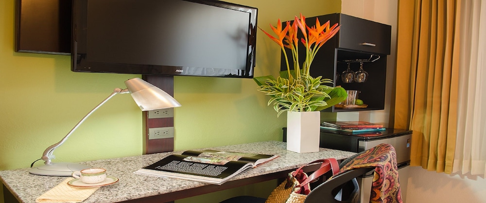 Hotel Suites and Apartments La Sabana has a privileged location as it’s just 220 yards from the entrance of La Sabana Metropolotan Park and also offers easy access to various attractions in San Jose Costa Rica, such as museums, shopping malls and the bus station. The hotel offers excellent services and comfortable facilities, including a business center, a meeting room, parking, a swimming pool, a restaurant, sauna and more. All of its cozy accommodations are nicely decorated in a somber style and offer an array of amenities; some of them are even equipped with a convenient kitchenette for long stays.CheckIn: 3:00 p.m., CheckOut: 12:00 p.m..Taxes are included: False