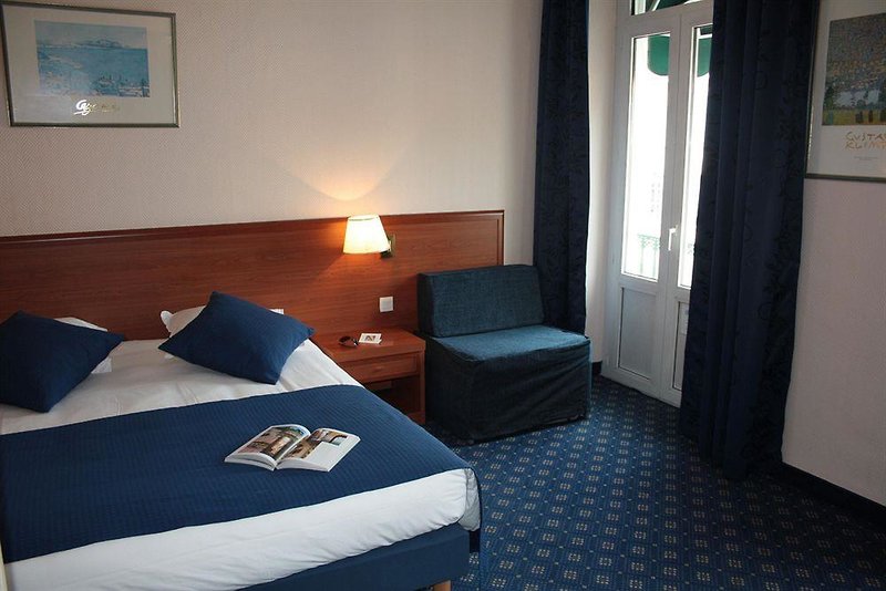 Ubicación - Este moderno hotel, situado en el corazón de Niza está a 300 m de la playa, donde los clientes encontrarán tiendas, bares y pubs, a 7 Km (10 minutos en transporte público) del aeropuerto de Niza y tiene en sus alrededores numerosos restaurantes y conexión con el transporte público, con el que podrá ir al centro turístico y al centro de la ciudad (5 Km).. Instalaciones - Este hotel se construyó en 1900. El establecimiento climatizado ofrece 66 habitaciones. Hay un vestíbulo y servicios de recepción a disposición de los viajeros. Es posible acceder a las plantas cómodamente en ascensor o bien por las escaleras. Las instalaciones incluyen una caja fuerte, un restaurante, una sala de desayunos, un bar y una sala de TV. En las zonas públicas hay Wi-Fi a disposición de los huéspedes. Aquellos que viajen con vehículo propio pueden dejarlo en el aparcamiento del alojamiento.. Habitaciones - Se ofrecen habitaciones con aire acondicionado, calefacción central y un cuarto de baño. Se pueden solicitar camas supletorias. Además, hay una caja fuerte. Pequeños extras se encargan de proporcionar una estancia agradable, como conexión a Internet, teléfono, televisor y Wi-Fi. Una ducha y una bañera se incluyen en el equipamiento de los cuartos de baño. Además, hay un secador de pelo. El hotel ofrece habitaciones de no fumadores.. Deporte y ocio - Las actividades de ocio ofrecidas proporcionan variedad; estas incluyen tenis, golf, windsurf, vela y submarinismo. Los servicios ofrecidos incluyen un programa de entretenimiento para niños con numerosas actividades. Comidas - Es posible elegir desayuno.. Tarjetas de crédito - En el establecimiento se aceptan las siguientes tarjetas de crédito: American Express, Visa y MasterCard..