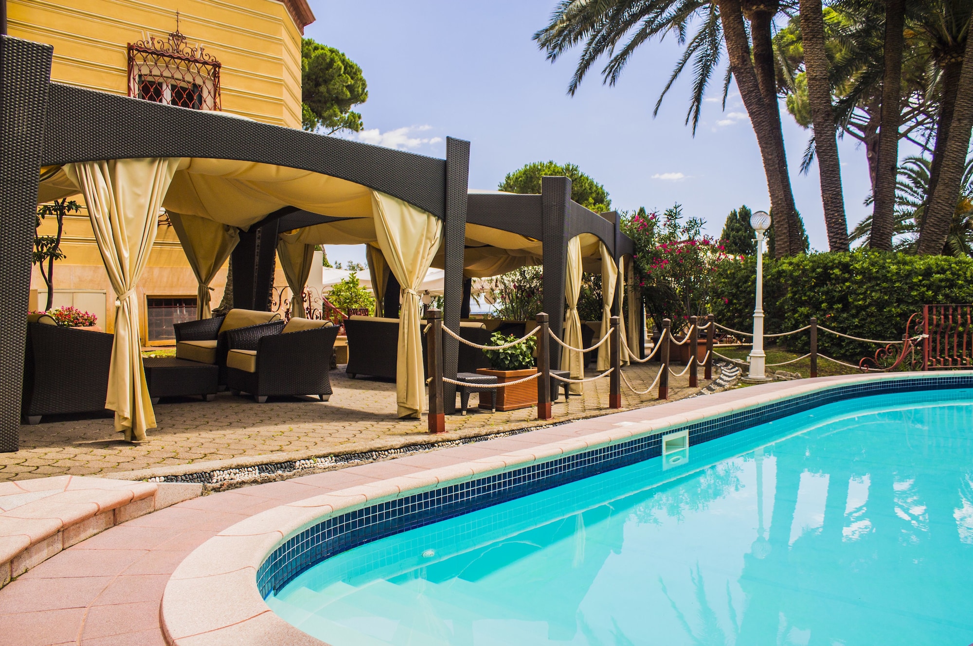 Si decides alojarte en Hotel Villa Pagoda, te encontrarás en una fantástica zona de Génova (Nervi), a solo unos pasos de Raccolte Frugone y a apenas 5 min a pie de Museo de Arte Moderno - Wolfson (Galleria d'Arte Moderna). Además, este hotel de 4 estrellas se encuentra a 14,7 km de Estadio Luigi Ferraris y a 15,2 km de Porta Soprana (Puerta medieval). Te sentirás como en tu propia casa en cualquiera de las 17 habitaciones con aire acondicionado. La conexión a Internet wifi gratis te mantendrá en contacto con los tuyos; también podrás ver tu programa favorito en el televisor con canales por satélite. El baño privado con bañera o ducha está provisto de artículos de higiene personal gratuitos y secadora de cabello. Entre las comodidades, se incluyen caja fuerte, escritorio y teléfono. Con piscina al aire libre y muchas otras instalaciones recreativas a tu disposición, no te quedará ni un minuto libre. Tienes también una terraza en la azotea y jardín donde sentarte a contemplar el paisaje. Otros servicios de este hotel incluyen conexión a Internet wifi gratis, servicios de conserjería y tienda de recuerdos o quiosco. Tienes un restaurante y una cafetería a tu disposición para comer algo, pero si lo prefieres, puedes llamar al servicio de habitaciones con horario limitado de este hotel. Disfruta de tu bebida favorita en el bar o lounge o en el bar junto a la piscina. Tendrás centro de negocios, servicio de limusina o coche con chófer y check-in exprés a tu disposición. Las instalaciones para eventos de este hotel incluyen zona para conferencias y salas de reuniones. Se ofrece servicio de transporte desde la estación de tren gratuito y un aparcamiento sin asistencia gratuito.