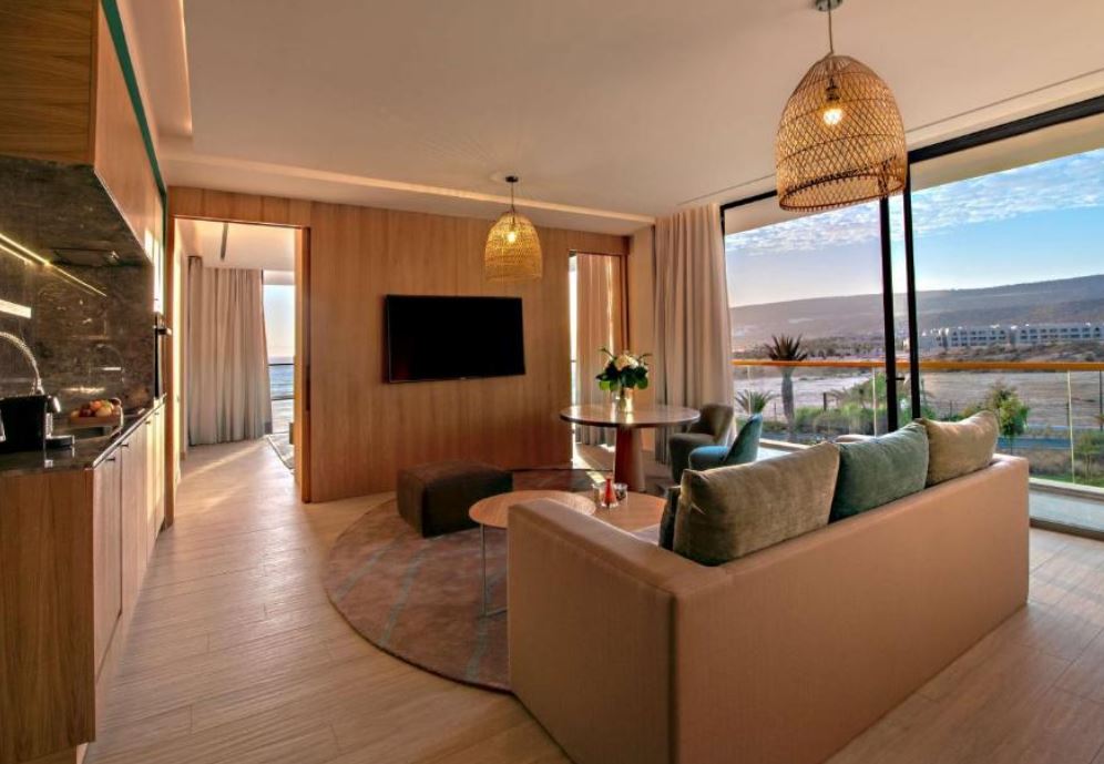 El Hyatt Regency Taghazout se encuentra en Taghazout y ofrece alojamiento con 3 restaurantes, aparcamiento privado gratuito, centro de fitness y bar. Este complejo de 5 estrellas cuenta con salón compartido y habitaciones con aire acondicionado, WiFi gratuita y baño privado. Hay recepción 24 horas, servicio de habitaciones, servicio de cambio de divisa, club infantil y spa. También hay 2 piscinas al aire libre. Las habitaciones del complejo están equipadas con zona de estar, TV y balcón o terraza grande con vistas a los jardines o al mar. Todas las habitaciones tienen armario. El Hyatt Regency Taghazout sirve un desayuno buffet. El Hyatt Regency Taghazout se encuentra a 2,1 km de la playa de Imourane y a 1,8 km de la zona de surf Panorama Point. El aeropuerto más cercano es el de Agadir-Al Massira, ubicado a 35 km del complejo.