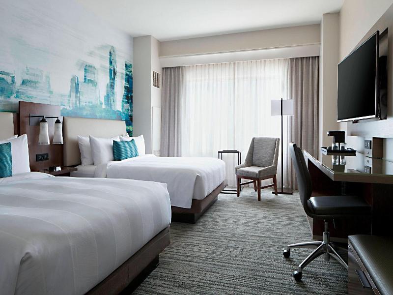 Este hotel en Indianápolis ofrece una variedad de servicios tanto para viajeros de negocios como de placer. Disfruta de una sesión de ejercicio en el gimnasio, relájate en el jardín o explora atracciones cercanas como el Indiana Convention Center y el White River State Park, ambos a menos de 1, 6 km. El hotel cuenta con 650 habitaciones equipadas con televisores inteligentes y baños privados. Las opciones gastronómicas incluyen Conner's Kitchen + Bar, especializado en cocina estadounidense, dos cafeterías y servicio de habitaciones las 24 horas. Con más de 3700 metros cuadrados de espacio para eventos, el hotel también es ideal para conferencias y reuniones. Los servicios adicionales incluyen wifi gratuito, conserjería y un centro de negocios.