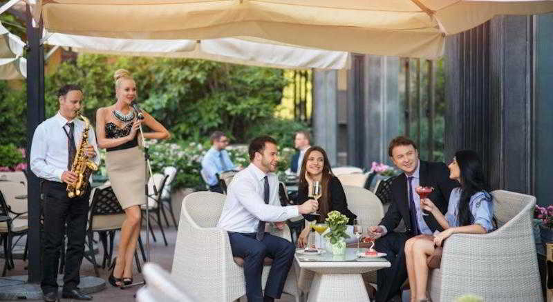 La arquitectura y diseo de este hotel de 11 plantas, construido en 2009, tambin merecen ser destacados, ya que fue diseado por el famoso arquitecto ucraniano Sergey Babushkin. Su fachada angular de mrmol y cristal es una inteligente mezcla de caractersticas clsicas y contemporneas, resaltadas por una estatua de tres metros de la diosa griega Nik, obra del escultor ucraniano Michael Reva. Los interiores del hotel fueron creados por el famoso diseador britnico John Tweedie y ofrecen una perspectiva autntica de la rica herencia de la regin. El vestbulo residencial y las zonas pblicas cuentan con suelos de mrmol de tonos crema y amarillo plido, columnas de mrmol negro, mobiliario italiano hecho a mano de Armando Rho, cortinas de gusto exquisito y arreglos artsticos y de iluminacin de Europa oriental especialmente encargados. Este hotel de negocios climatizado consta de 272 habitaciones en total y dispone de vestbulo con servicio de salida y recepcin 24 horas, caja fuerte, servicio de cambio de divisas, guardarropa, ascensor, quiosco de prensa, bar y restaurante, instalaciones para conferencias, conexin a Internet WiFi, servicio de habitaciones y de lavandera, aparcamiento y garaje.