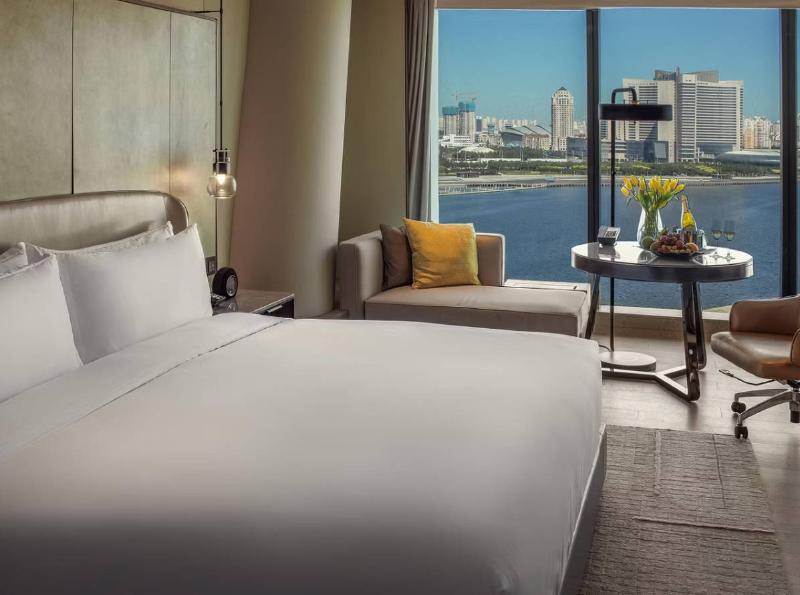 El InterContinental Tianjin Yujiapu Hotel and Residences se encuentra en el distrito financiero de Yujiapu, en la nueva área de Tianjin Binhai. Goza de una ubicación única a orillas del río Hai, frente a Conch Bay y junto a la estación de tren de alta velocidad de Binhai, que conecta con Pekín y el centro de Tianjin. El hotel está a solo 20-30 minutos en coche del Centro Nacional de Convenciones y Exposiciones (Tianjin). Como hotel internacional de lujo, se ha convertido en un nuevo punto de referencia en Binhai.