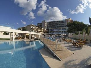 Este complejo tipo apartotel esta situado literalmente a un suspiro de la playa de arena de Agia Marinam, por lo que ofrece una vista impresionante del mar de Creta. Tambien esta cerca de la ciudad de Chania (a 8 km) y de las playas mas famosas de la costa norte, como las que estan en Chrissi Akti, Agii Apostoli, Kato Stalos y Platanias. Ademas, esta cerca, en concreto a 10 minutos, de la carretera que conecta Chania con Retino y Kissamos, por lo que se accede facil y rapidamente a las prefecturas vecinas y a numerosos pueblos pintorescos y playas pristinas de Chania. Hay paradas de transporte publico a unos 300 m. El aeropuerto internacional de Chania esta a una distancia aproximada de 22 km y el aeropuerto internacional de Heraclion esta a unos 160 km. La encantadora arquitectura elegante del complejo tipo apartotel mezcla elementos modernos y tradicionales en perfecta armonia con el paisaje circundante. Cuenta con dos edificios unidos por una impresionante pasarela de cristal que fue construida sobre la antigua carretera de Chania-Kastelli y que proporciona acceso facil y rapido a todas las zonas del hotel. El establecimiento es un paraiso para parejas y familias que buscan una relajacion sin preocupaciones en un ambiente tranquilo. Es el destino ideal para amantes de la naturaleza y para todos los que simplemente deseen descansar o explorar la naturaleza multifacetica de Creta. El establecimiento, construido en 2009, tiene aire acondicionado y cuenta con 88 apartamentos y 49 estudios, ademas de disponer de vestibulo con recepcion y servicio de salida 24 horas, caja fuerte, servicio de cambio de divisas, ascensor y parque infantil y de juegos. En la cafeteria, en el bar y en el restaurante se sirven comidas y bebidas. Los huespedes que viajen por negocios apreciaran con seguridad las instalaciones para conferencias. Ademas, se ofrecen conexion a Internet, servicio de habitaciones y de lavanderia, aparcamiento, garaje (gratis) y servicio de alquiler de bicicletas.