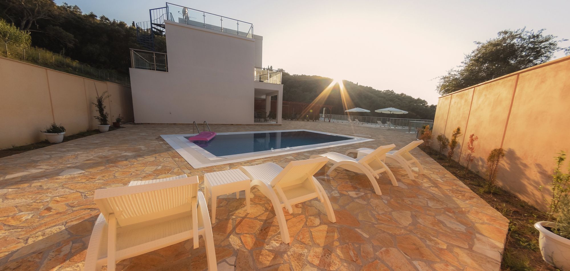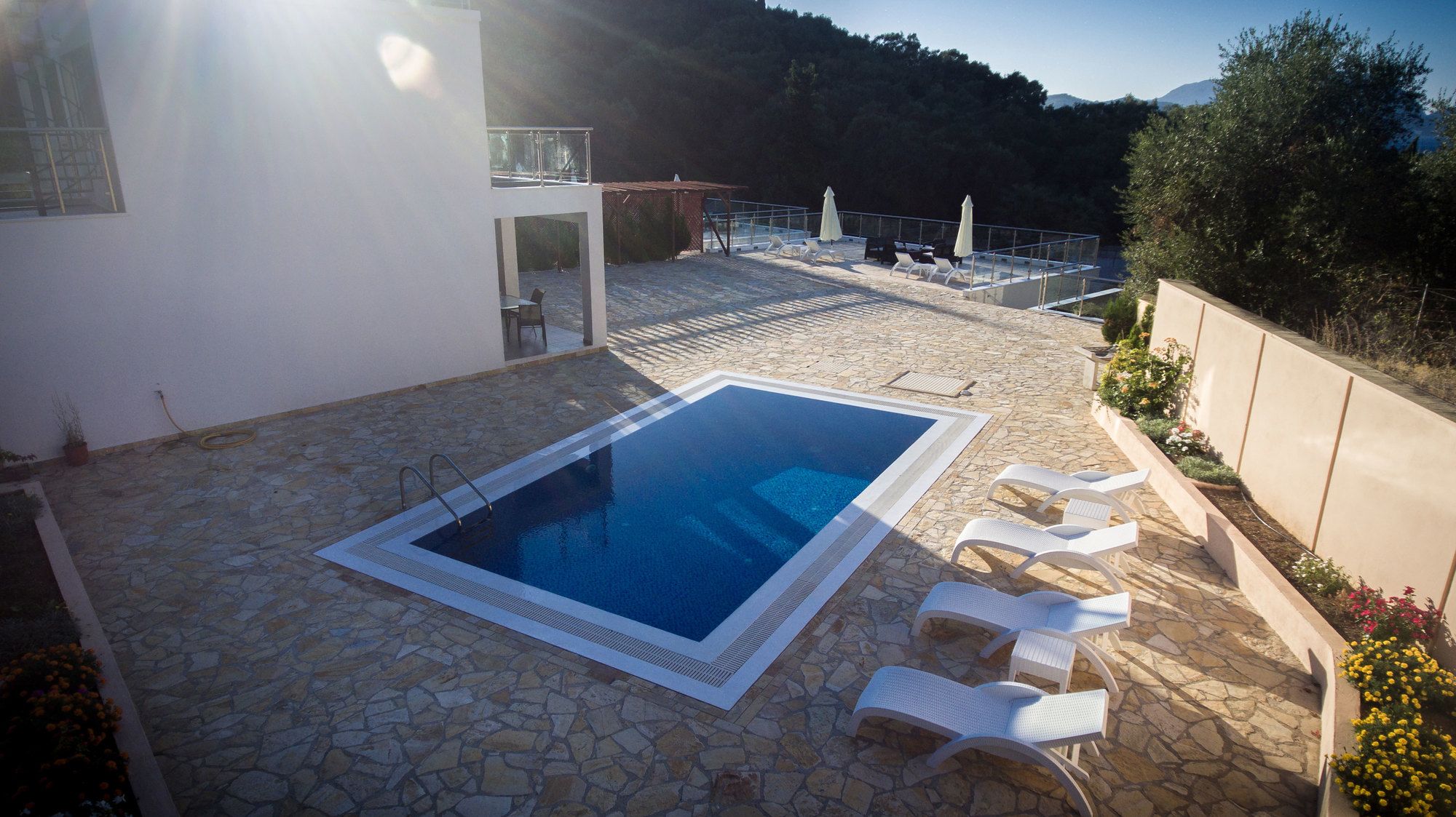 Si decides alojarte en Jackson Villas de Corfú, estarás a menos de 15 minutos en coche de Playa de Boukari y Antiguos Baños Romanos. Además, esta villa de 4 estrellas se encuentra a 10,5 km de Playa de Issos y a 12,2 km de Corfu Shell Museum. En las 3 habitaciones climatizadas, equipadas con piscina privada, te espera una estancia inolvidable. La cocina está equipada con frigorífico, horno y placa de cocina. Mantén el contacto con los tuyos gracias a la conexión a Internet wifi gratis. Entre las comodidades, se incluyen una zona de estar separada y microondas, además de un servicio de limpieza disponible todos los días. Con piscina al aire libre y muchas otras instalaciones recreativas a tu disposición, no te quedará ni un minuto libre. Tienes también una terraza y jardín donde sentarte a contemplar el paisaje. Encontrarás también conexión a Internet wifi gratis, área de picnic y área para parrillas. Hay un aparcamiento sin asistencia gratuito disponible.