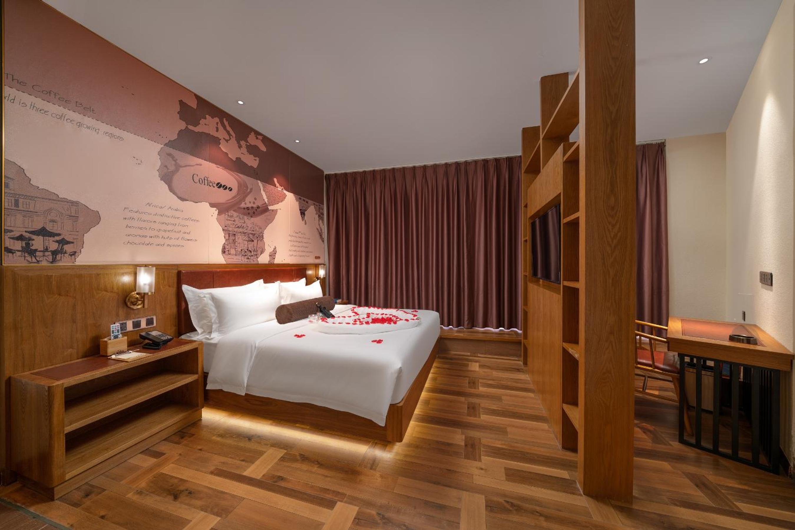 Facilities and services include Car parking (extra charge), 24hr reception, Air Conditioning, Room service and Free WiFiThe hotel will offer air-conditioned rooms with a flat-screen TV, a private bathroom with a shower, a safe deposit box, a kettle and a wardrobe for its guests. Bed linens and towels are provided in the rooms of the Guangzhou Beijing Road Metro Station Pedestrian Street Branch of JAMES JOYCE COFFETEI.Address No.293 Wanfu Road Guangzhou China