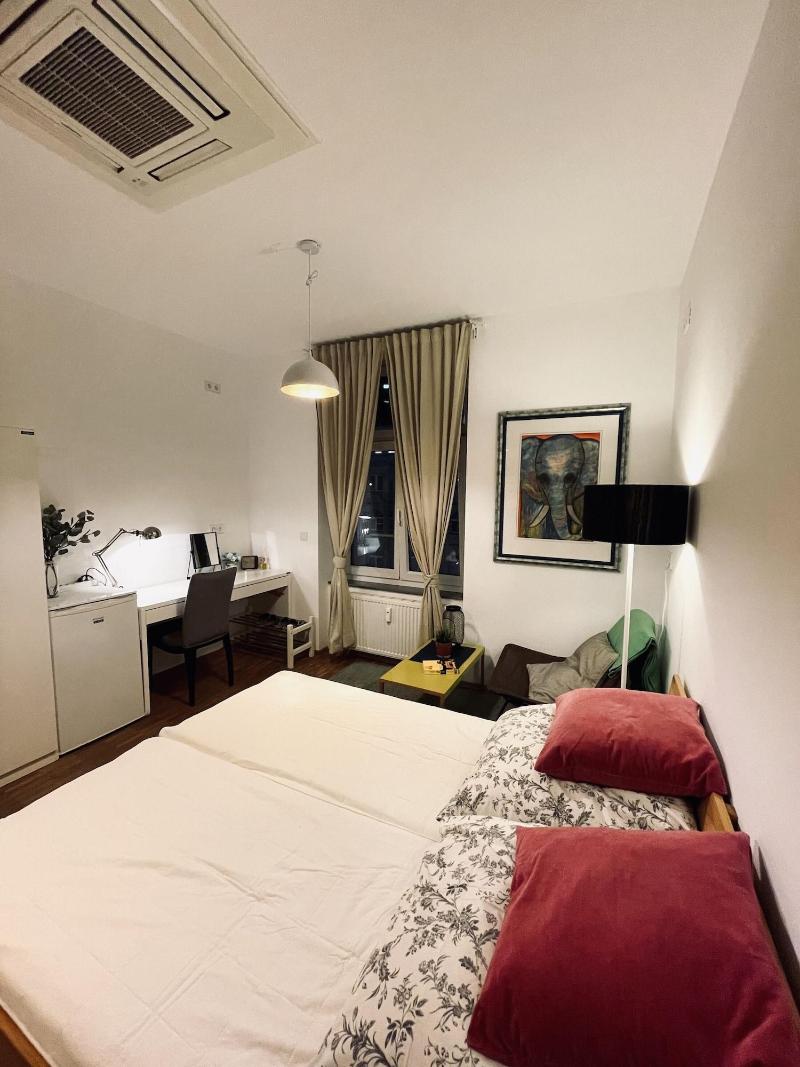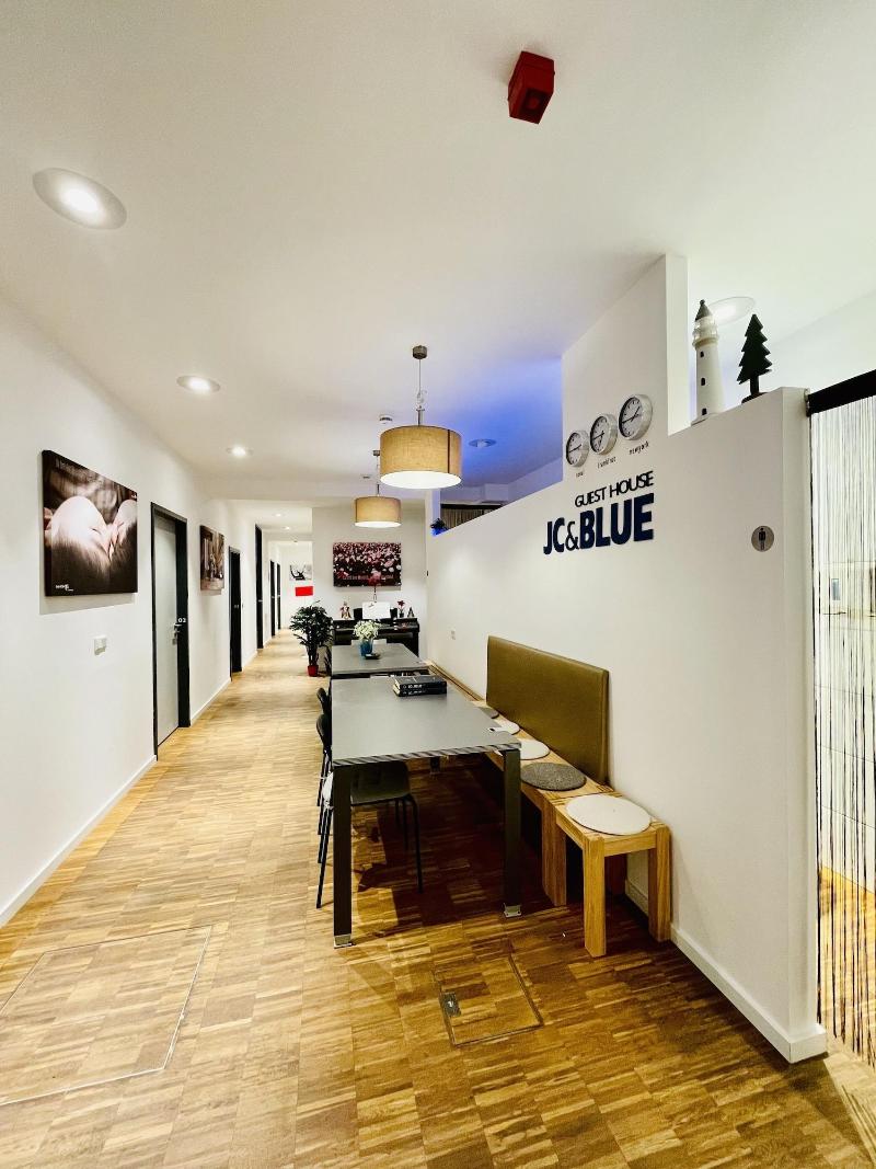 Disfruta de las convenientes comodidades del JC&BLUE Guesthouse - Hostel, incluyendo wifi gratuito y una sala de estar común. Comienza tu día con un desayuno continental gratuito, servido de 7:30 a 8:30 h. Las comodidades adicionales incluyen una estación de computadoras, consigna de equipaje y lavandería. Relájate en una de las 7 habitaciones con aire acondicionado, cada una equipada con refrigerador, microondas y cama con colchón viscoelástico. Prepara tus comidas en la cocina compartida. Los baños ofrecen duchas, artículos de tocador de diseño y secadores de pelo. Ubicado en el corazón de Fráncfort, estarás a un corto paseo del distrito financiero, Museumsufer y lugares emblemáticos como la Eurotower y la Commerzbank Tower. Un paseo de 15 minutos te lleva a Skyline Plaza y a la Feria de Fráncfort. El Aeropuerto de Fráncfort (FRA) se encuentra convenientemente ubicado a 16, 6 km de distancia.