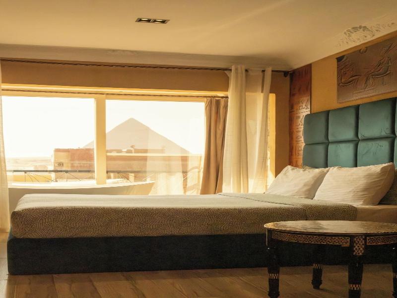 Si decides alojarte en Jimmy Pyramids Hotel , disfrutarás de una fantástica ubicación en el centro de Gizeh, a solo 5 min a pie de Pirámides de Guiza y a 7 min de Esfinge de Gizeh. Además, este hotel de lujo se encuentra a 5, 3 km de Gran Museo Egipcio y a 1, 4 km de Gran Pirámide de Guiza.