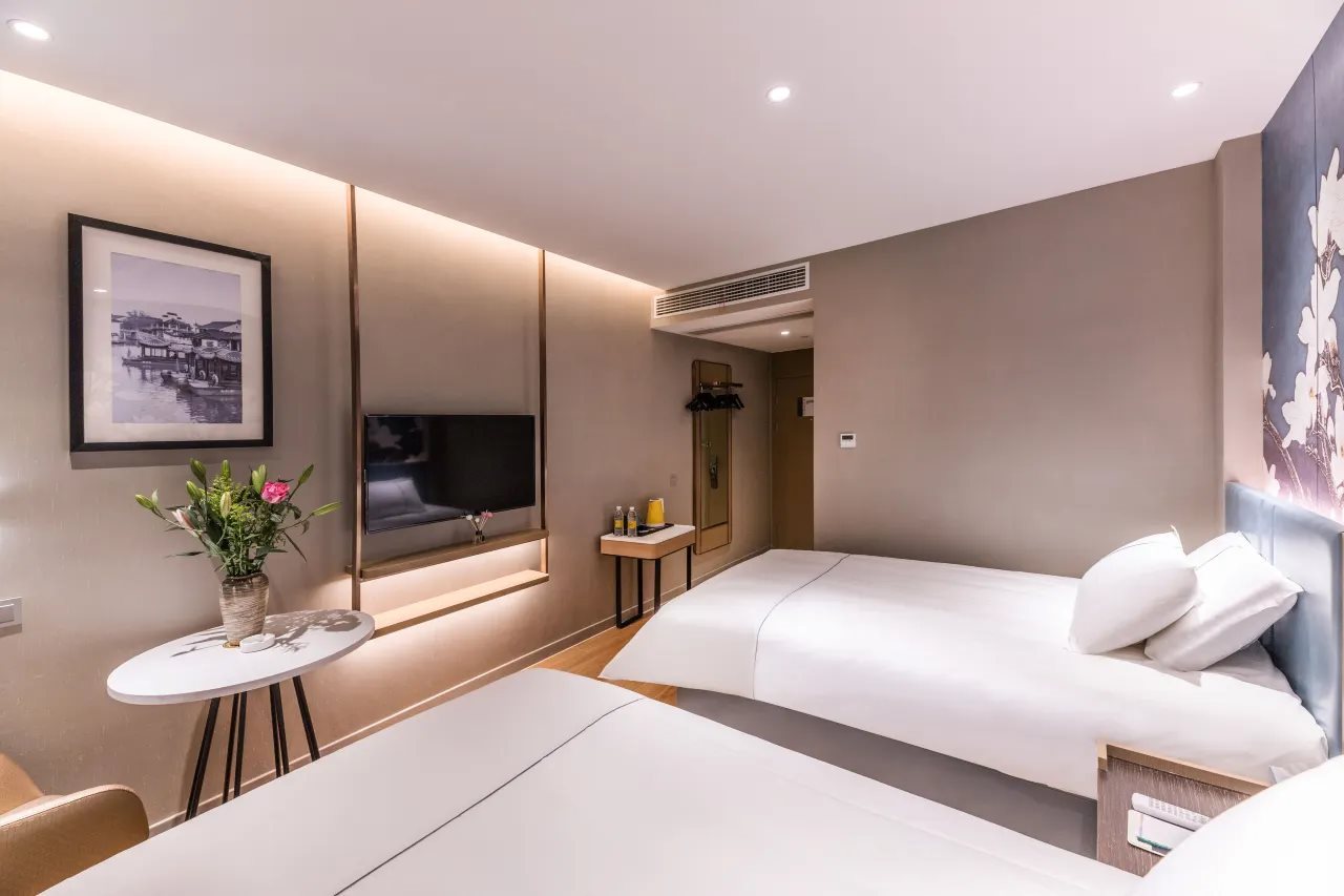 Facilities and services include 24hr reception, Car parking, Elevator, Restaurant and Wireless internet.Room feature Air conditioning, Desk, Private bathroom, Smoking rooms, Television and Wi-Fi in Room.Address: No.310 Zhongshan Rd.Wujiang, Suzhou China.