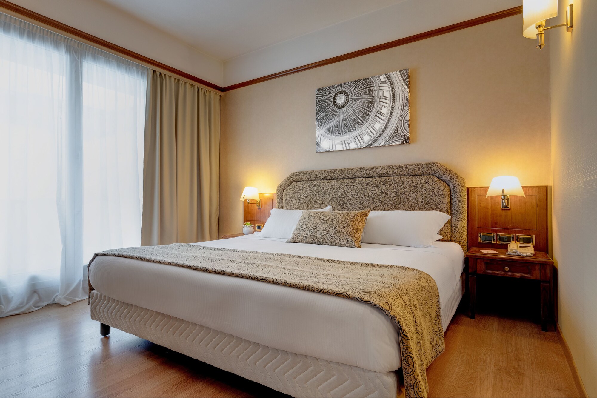 Las instalaciones y servicios incluyen restaurante, bar, acceso a Internet inalámbrico, sala de reuniones, ascensor y recepción las 24 horas.Las habitaciones cuentan con teléfono, televisión, mini-bar (cargo extra), caja de seguridad, aire acondicionado, acceso a Internet inalámbrico (cargo extra), secador de pelo y cuarto de baño.Dirección: Via Cicerone 55 C, 00193 Roma, Italia.
