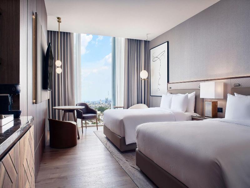 No te pierdas las oportunidades recreativas que incluyen una piscina al aire libre y un gimnasio abierto las 24 horas. Este hotel también ofrece acceso inalámbrico a internet de cortesía, tiendas de regalos/quiosco de prensa y un salón para banquetes. Disfruta de una deliciosa comida en ZIBU, que sirve a los huéspedes del JW Marriott Hotel Guadalajara. Socializa con otros huéspedes en la recepción gratuita que se ofrece a diario. Relájate con una bebida refrescante en uno de los 2 bares/salones. El desayuno bufé se sirve todos los días de 7:00 a 11:00, con un coste adicional. Los servicios destacados incluyen acceso a internet por cable de cortesía, recepción 24 horas y consigna de equipaje. Siéntete como en casa en una de las 191 habitaciones con aire acondicionado, minibar y televisor LCD. Disfruta de la televisión por satélite. El baño privado con bañera o ducha está provisto de cabezal de ducha tipo lluvia y secador de pelo. Entre las comodidades, se incluyen caja fuerte y escritorio, además de servicio de limpieza diario. Las distancias se muestran con una aproximación de 0, 1 millas y kilómetros.