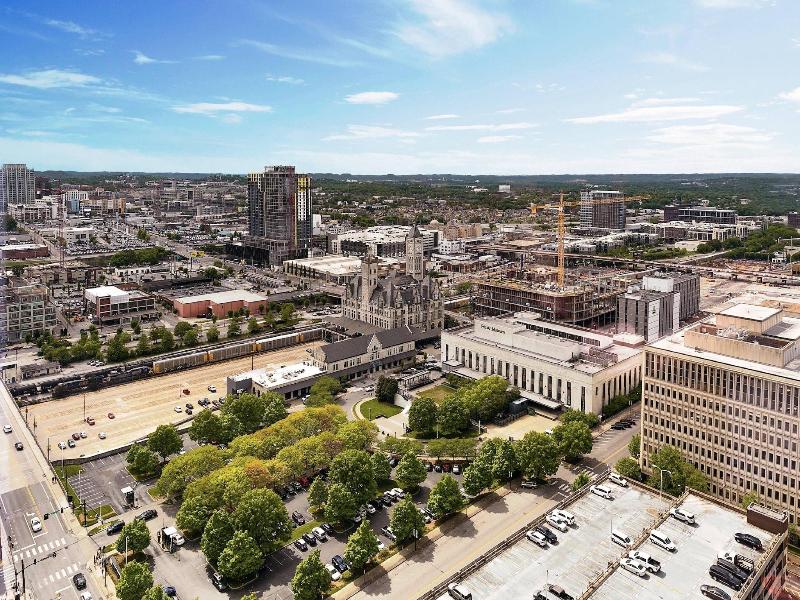 Un edificiomuy moderno y bonito situado frente al Nashville Music City, habitaciones modernas , comodas con ecxelente baño, bonita vista en pisos superiores, buen desayuno y lobby bar muy visitado...