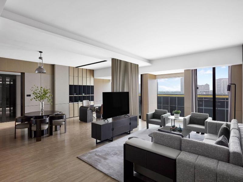 Si decides alojarte en JW Marriott Shanghai Fengxian, te encontrarás en una fantástica zona de Shanghái (Distrito de Fengxian), a 37, 4 km de El Bund y a 37, 4 km de Parque temático Shanghai Disneyland©. Además, este hotel de lujo se encuentra a 34, 7 km de Centro comercial Xintiandi Style y a 35, 4 km de Plaza del Pueblo. . Para un relax sin igual, nada como una visita al spa. Si quieres divertirte, aquí tienes una piscina cubierta y un gimnasio, entre muchas otras instalaciones. . Te sentirás como en tu propia casa en cualquiera de las 265 habitaciones con microondas y televisión de pantalla plana. Para los momentos de ocio, tendrás un televisor con canales por cable y un reproductor de DVD. Además, podrás mantenerte al día gracias a la conexión wifi gratis. El baño privado con bañera o ducha está provisto de artículos de higiene personal gratuitos y secadores de pelo. Entre las comodidades, se incluyen escritorio, minibar y teléfono. . Acércate a uno de los 3 restaurantes de este hotel para comer algo, o aprovecha el servicio de habitaciones las 24 horas. Se ofrece un desayuno completo de pago. . Tendrás check-in exprés, periódicos gratuitos en el vestíbulo y tintorería a tu disposición. Este hotel pone a tu disposición 7 salas de reuniones donde celebrar todo tipo de eventos. Hay un aparcamiento sin asistencia (de pago) disponible. . Las distancias se expresan en números redondos.
