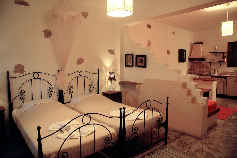 Con una terraza donde descansar y comodidades como conexin a Internet wifi gratis, no te faltar de nada! En Kalderimi Studios tienes un restaurante a tu disposicin para comer algo. Tendrs consigna de equipaje, una caja fuerte en recepcin y un ascensor a tu disposicin. Reserva una de las 5 habitaciones climatizadas, todas equipadas con chimenea y televisin de pantalla plana. Las habitaciones disponen de balcn o patio. La conexin a Internet wifi gratis te mantendr en contacto con los tuyos; tambin podrs ver tu programa favorito en el televisor con canales por cable. Entre las comodidades, se incluyen caja fuerte y escritorio, adems de un servicio de limpieza disponible todos los das.