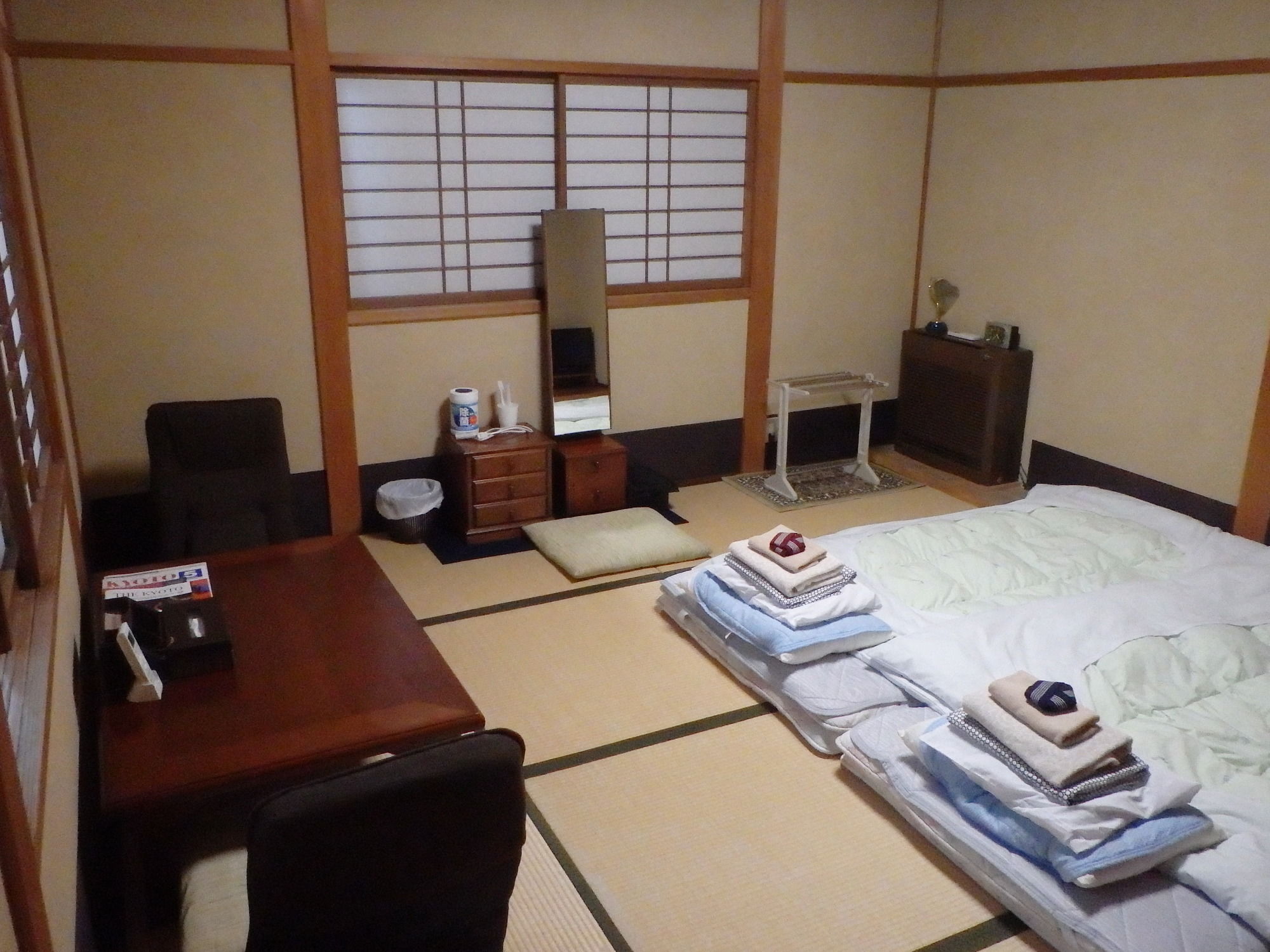 Si te alojas en Kamuro-an, en Kioto (Higashiyama), estarás a pocos minutos de Monumento conmemorativo a la guerra Ryozen Kannon y Templo Kiyomizu. Este ryokan se encuentra cerca de Castillo de Nijo y de Palacio Imperial de Kioto.Habitaciones Te sentirás como en tu propia casa en una de las 3 habitaciones con aire acondicionado y televisor LCD. Mantén el contacto con los tuyos gracias a la conexión a Internet wifi gratis. El cuarto de baño con ducha y bañera combinadas está provisto de bañera profunda y artículos de higiene personal gratuitos. Las comodidades incluyen escritorio y la posibilidad de solicitar tabla de planchar con plancha.Servicios Con jardín donde descansar y comodidades como conexión a Internet wifi gratis, ¡no te faltará de nada!Servicios de negocios y otros Tendrás servicio de tintorería, depósito de equipaje y caja fuerte en recepción a tu disposición. Hay un aparcamiento sin asistencia (de pago) disponible.