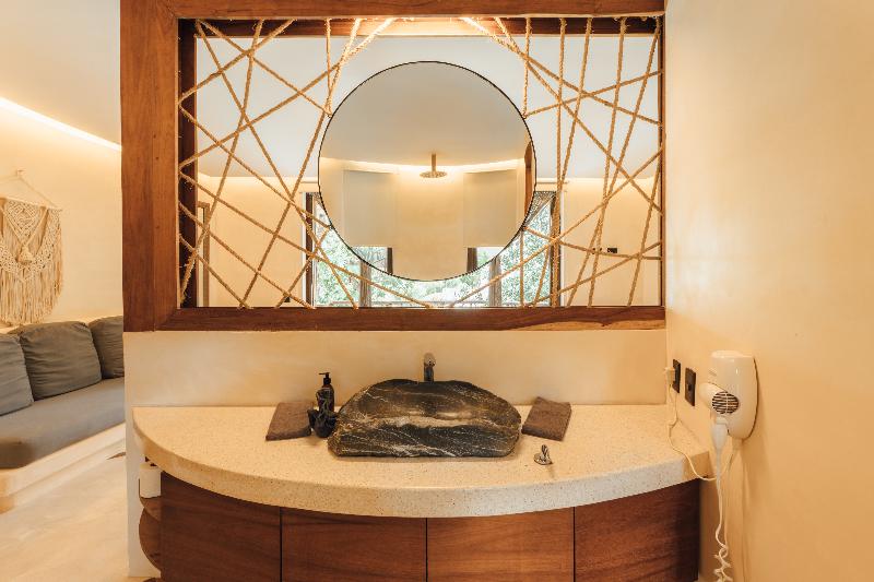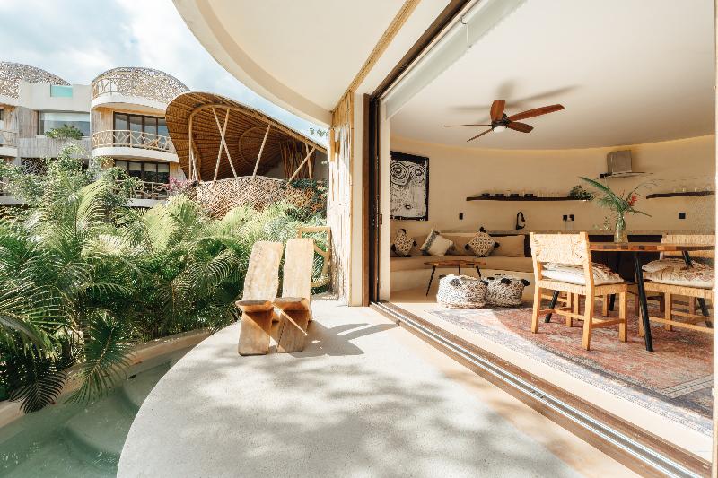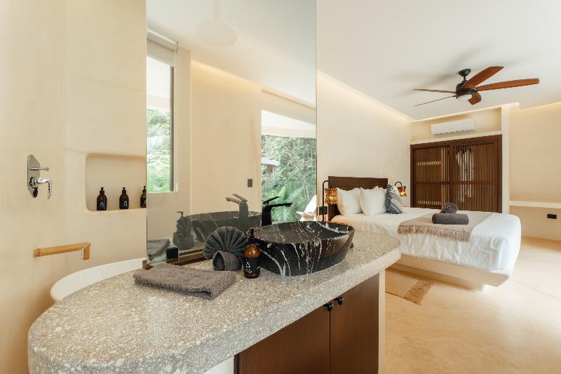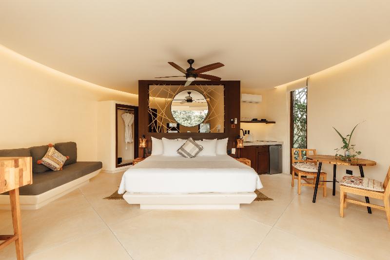 KAN Tulum es un hotel de lifestyle con esencia y alma infinitas. Programas de bienestar, gastronomía, arte, música y experiencias culturales se dan cita en el vibrante entorno selvático de KAN, a solo 5 minutos en coche de las icónicas playas de Tulum. Espacios meticulosamente diseñados para el rejuvenecimiento holístico, integrados a la perfección con las comodidades del día a día, ofrecen un santuario para la relajación y la recarga de energía. Un tranquilo cenote privado, una relajante piscina y solárium, un anfiteatro para espectáculos, un restaurante y un bar enmarcan un espacio donde florecen la expresión creativa y la conexión con la comunidad. Somos una propiedad libre de sargazo durante todo el año, con la sostenibilidad circular como uno de nuestros valores fundamentales. Nuestros valores nos definen como algo más que un destino; somos una filosofía de hospitalidad que abraza la belleza de la armonía, la magia de lo maravilloso y el gran potencial de transformación.