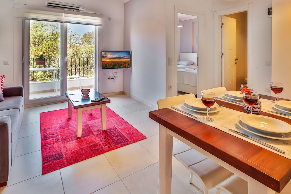 En Kas (Pueblo de Kas), a pocos minutos de Rock Tombs y Mercado Pazkar se sitúa Kas Inn Suites. Este apartotel se encuentra cerca de Tumba de los leones y de Estatua de Ataturk.Habitaciones Reserva una de las 5 habitaciones climatizadas, todas dotadas de cocina con frigorífico/congelador grande y placa de cocina. Las habitaciones disponen de balcón o patio. La conexión a Internet wifi gratis te permite comunicarte con los tuyos, y en tus ratos libres tendrás un televisor LCD con canales por satélite para entretenerte. Las comodidades incluyen una zona de estar separada y cafetera y tetera, además de un servicio de limpieza disponible de forma limitada.Servicios Con una terraza y jardín donde descansar y comodidades como conexión a Internet wifi gratis, ¡no te faltará de nada!