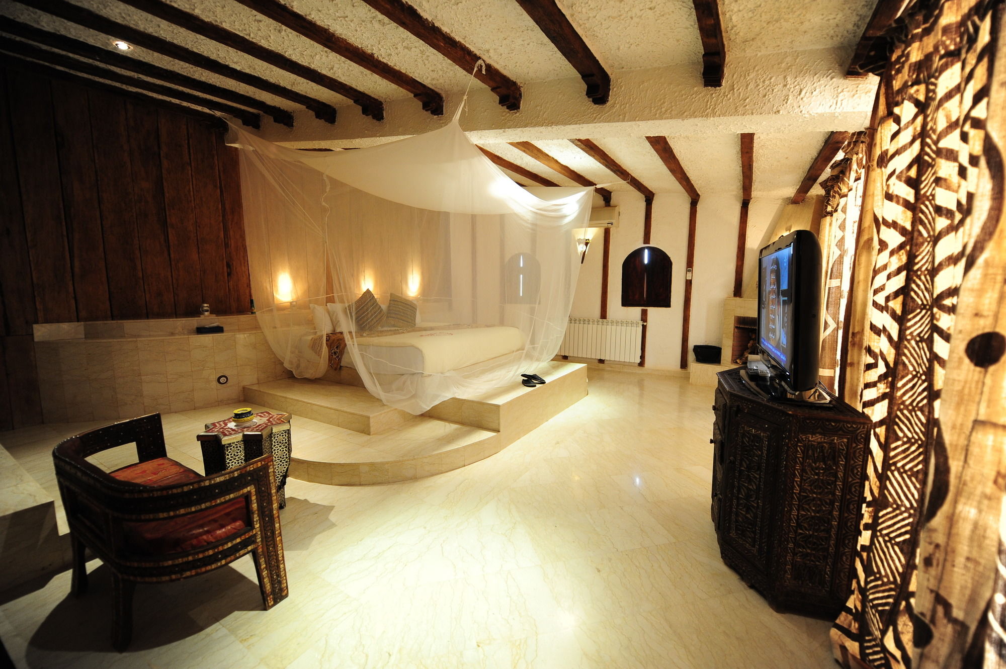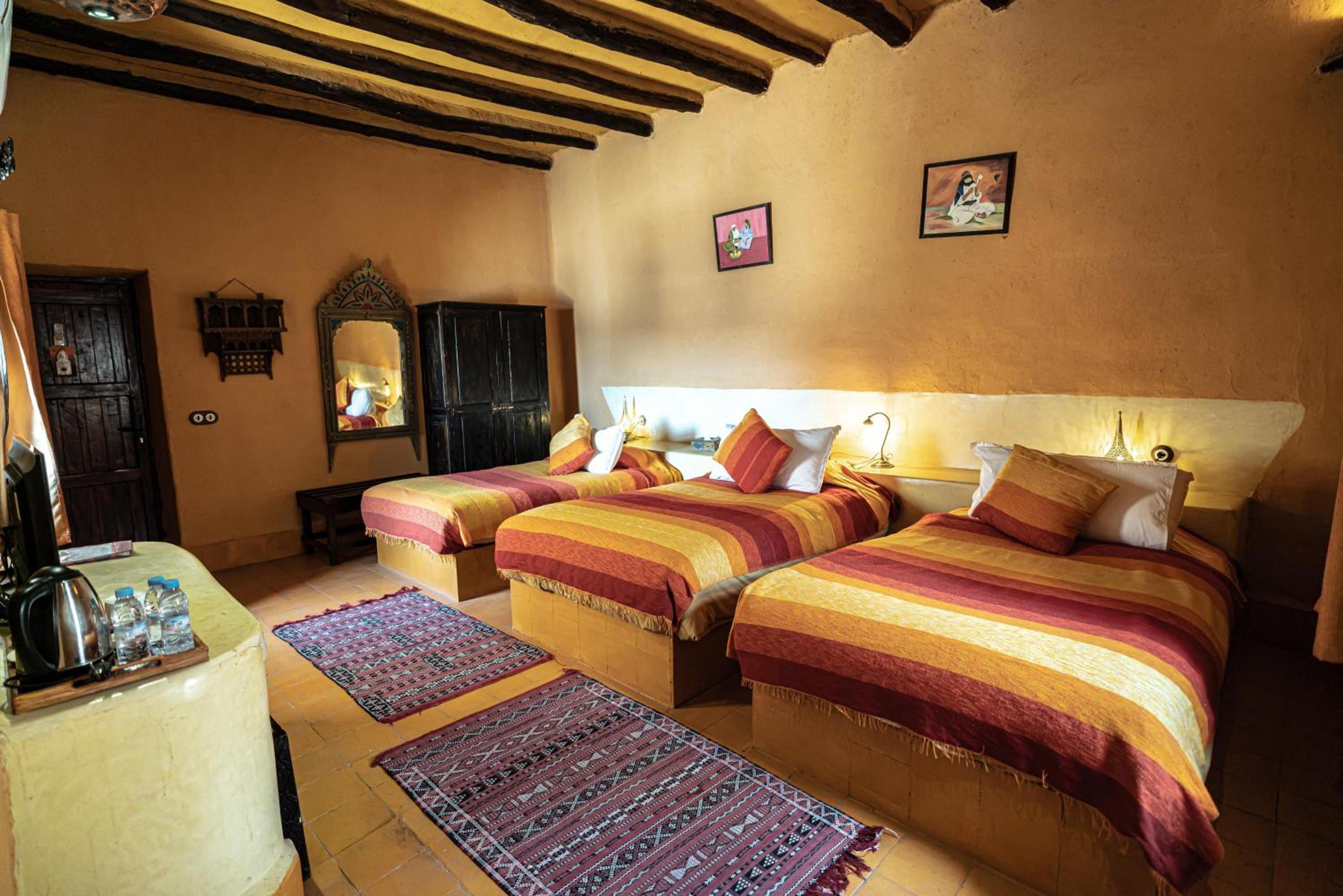 En Merzouga, Kasbah Hotel Tombouctou te permite llegar cómodamente a Palmeral de Igrane y a Kasba de Hassilabied. Este hotel de 4 estrellas se encuentra cerca de Lago Dayet Srji.Habitaciones Te sentirás como en tu propia casa en una de las 79 habitaciones con minibar y televisor de pantalla plana. La conexión a Internet wifi gratis te mantendrá en contacto con los tuyos; también podrás ver tu programa favorito en el televisor con canales por satélite. El cuarto de baño está provisto de bañera o ducha y artículos de higiene personal gratuitos. Las comodidades incluyen caja fuerte, escritorio y teléfono.Servicios Elige entre las numerosas instalaciones recreativas ofrecidas, que incluyen piscina al aire libre y bañera de hidromasaje. Se ofrece además conexión a Internet wifi gratis y servicios de conserjería.Para comer Si tienes hambre, pasa por el restaurante de este hotel, que ofrece desayunos, almuerzos y cenas. También hay una cafetería y servicio de habitaciones con horario limitado. Apaga la sed con tu bebida favorita en el bar o lounge.Servicios de negocios y otros Tendrás servicio de tintorería, servicio de recepción 24 horas y atención multilingüe a tu disposición. Hay un aparcamiento sin asistencia gratuito disponible.