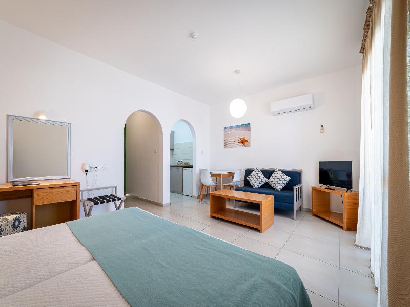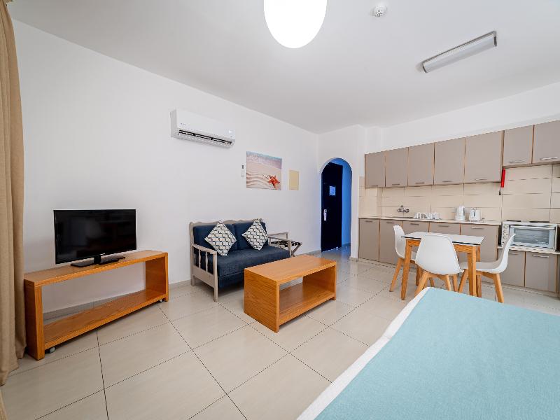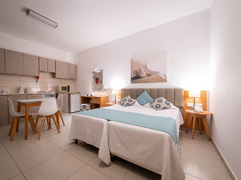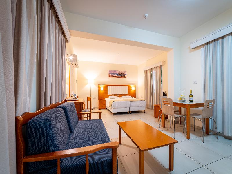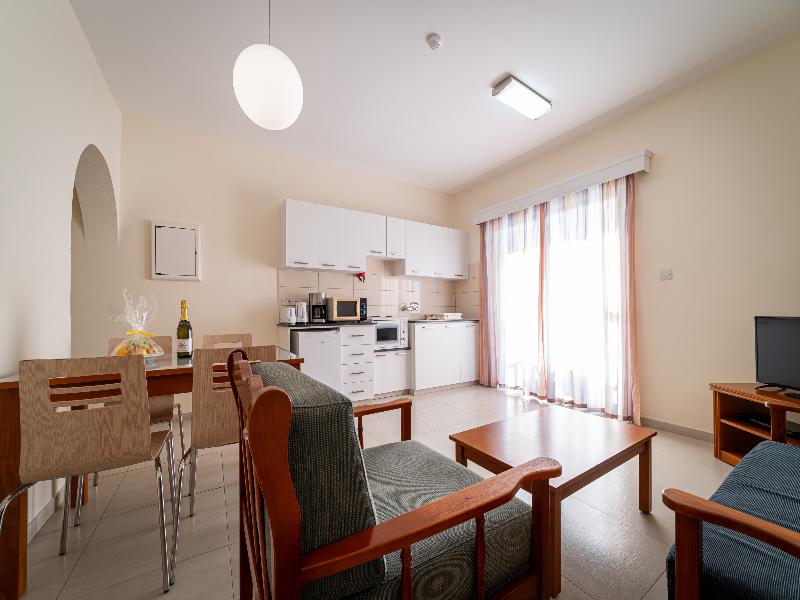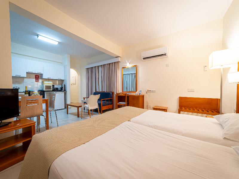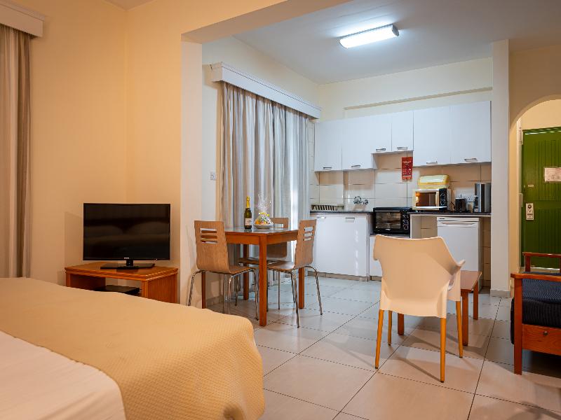 El hotel está ubicado en un entorno pintoresco con vistas al azul Mediterráneo, en total armonía con su entorno. Cuenta con 259 hermosos apartamentos en Paphos, en primera línea de playa. Cada apartamento está completamente equipado para que puedas cocinar por tu cuenta y disfrutar de la libertad de preparar tus propias comidas, o bien aprovechar los servicios y comodidades propios de un hotel de cuatro estrellas.
