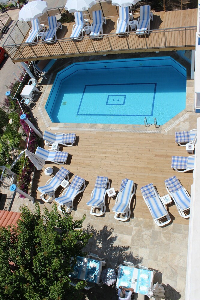 Este hotel cuenta con una cntrica ubicacin, rodeado de una gran cantidad de bares, cafeteras, tiendas, comercios y restaurantes. Las preciosas playas de la Riviera Turca est a unos 400 m, la de Petarca es una de las ms conocidas y llegar a ella con el Dolmus en 30 minutos. Pero tambin estn muy cerca ciudades histricas como Xintos o Letoon. El aeropuerto de Dalaman est a 125 km y el de Antalya, a 180 km.Este hotel, restaurado en el 2006 y dirigido por una familia, tiene tres plantas en las que se reparten un total de 20 habitaciones. Cuenta con un acogedor hall de entrada, una sala de juegos y un rea de recepcin abierta las 24 horas del da, donde se le ofrece caja fuerte y servicio de cambio de divisa. El cliente podr tambin utilizar la terminal de Internet. Parte de las instalaciones son tambin un acogedor bar y un restaurante con sillas altas para los ms pequeos. Como prestaciones adicionales, se le ofrecen los servicios de habitaciones y de lavandera.Las habitaciones han sido equipadas y decoradas de forma prctica. Disponen de un cuarto de bao con ducha y wc. Adems, cuentan con telfono de lnea directa, aire acondicionado, cama doble y moqueta. La mayora tienen, adems, un balcn.En el bonito recinto exterior, tiene a su disposicin una piscina y un bar de aperitivos. Tambin tendr la posibilidad de jugar al billar. Semanalmente, se hacen barbacoas en la azotea con msica turca y bailes. A pocos pasos, en la playa, encontrar muchas ofertas de deportes acuticos y con el barco llegar a las terrazas de arena tpicas de la regin.Todas las maanas se le ofrece desayuno en forma de bufet, para que pueda servirse lo que quiera. A la hora de la comida y de la cena podr elegir a la carta o pedir un men.