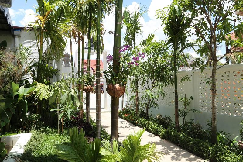 El íntimo y muy asequible Hotel Ombra Angkor cuenta con un precioso jardín de césped rodea...