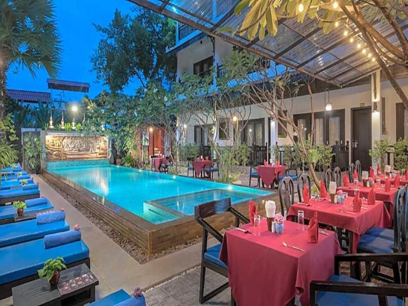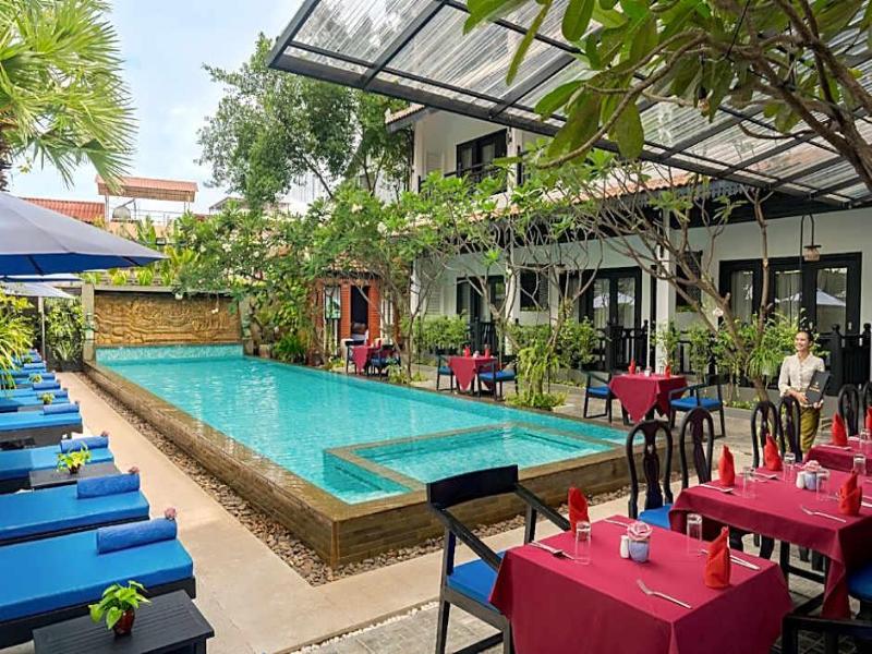 Disfruta de una refrescante estancia en este hotel, con piscina al aire libre y alquiler de bicicletas. Los servicios incluyen wifi gratis, servicio de conserjería y servicio de niñera (con cargo). Explora las atracciones cercanas fácilmente con el servicio de transporte de la zona (con cargo). Saborea la cocina internacional en el Mansion Dining Room, con vistas al jardín, o disfruta del servicio de habitaciones en horario limitado. Relájate en el bar o lounge o en el bar junto a la piscina. El desayuno continental está disponible todos los días (de pago). Para tu comodidad, dispones de centro de negocios, servicio de tintorería/lavandería y recepción 24 horas. Se proporciona servicio de transporte al aeropuerto (ida y vuelta, con cargo, 24 horas) y aparcamiento gratuito en las instalaciones. Cada una de las 22 habitaciones con aire acondicionado ofrece minibar, TV LED, balcón privado, wifi gratis y programación por satélite. Los baños cuentan con duchas de efecto lluvia y artículos de tocador gratuitos. Ubicado cerca del Old Market Area, Pub Street y Artisans D'Angkor, este hotel se encuentra a poca distancia de las principales atracciones de Siem Reap.