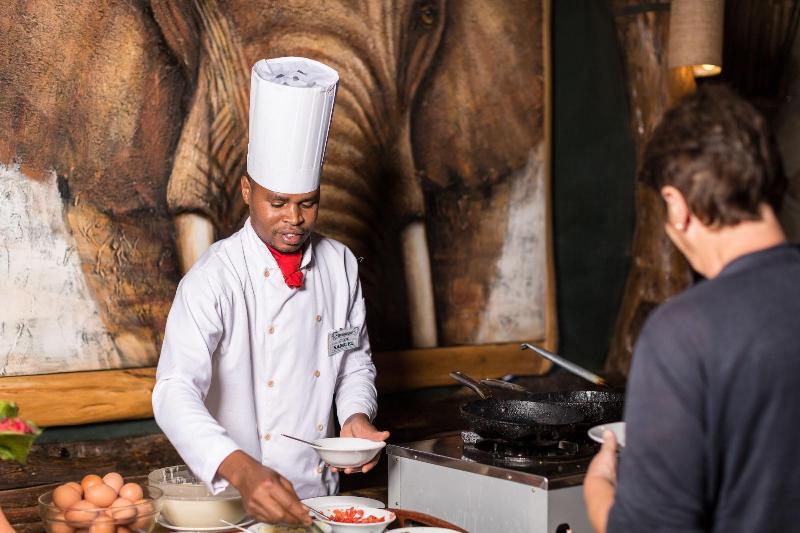 Podrás comer en el restaurante de esta tienda de safari, que sirve almuerzos y cenas, aunque para algo más ligero también tienes una cafetería. Qué mejor forma de acabar el día que con una bebida en el bar o lounge.