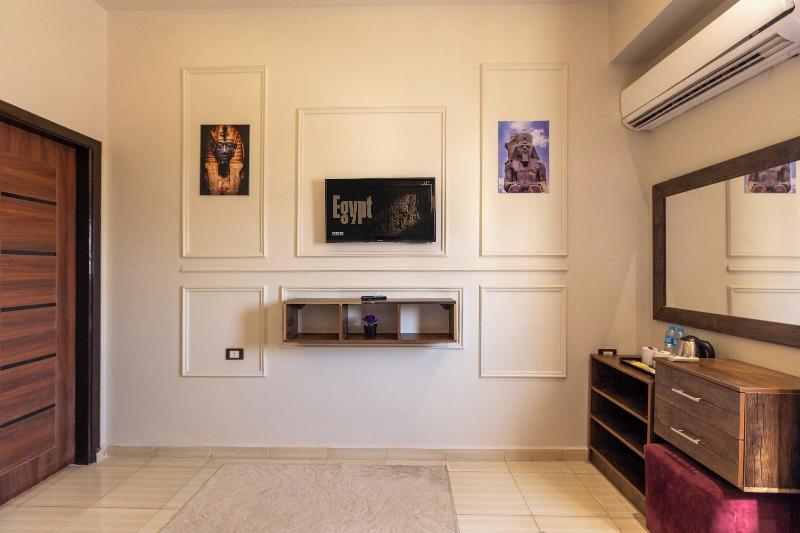 Disfruta de las instalaciones recreativas, como un gimnasio, o admira la vista desde la terraza de la azotea. Este hotel también ofrece wifi gratis, servicios de conserjería y tiendas de regalos/quiosco de prensa. Los huéspedes pueden desplazarse a destinos cercanos en el servicio de transporte de la zona (de pago). En King Cheops Inn, podrás disfrutar de una deliciosa comida en el restaurante. Todos los días se sirve un desayuno bufé gratuito de 4:30 a 10:00. Tendrás a tu disposición acceso a internet por cable gratis, servicio de tintorería/lavandería y recepción 24 horas. Se ofrece servicio de transporte al aeropuerto (ida y vuelta) de pago (disponible las 24 horas), y hay aparcamiento sin asistencia gratuito disponible. Ponte cómodo en una de las 6 habitaciones con aire acondicionado, chimenea y televisor LED. Tu cama Select Comfort incluye edredones de plumas y sábanas de algodón egipcio. Dispondrás de conexión a internet por cable y wifi gratis.