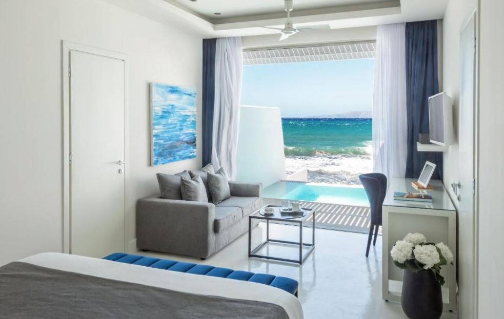 El Knossos Beach Bungalows Suites Resort & Spa está situado en una playa de arena. Cuenta con 3 piscinas y 3 restaurantes. Además, la playa está equipada con tumbonas, sombrillas y un bar. Las suites y los bungalows encalados disponen de terraza con vistas al mar y están rodeados de unos jardines preciosos. Todos los alojamientos tienen aire acondicionado, ventanales con doble acristalamiento desde el suelo hasta el techo y TV vía satélite. Las habitaciones Signature, Confort y Confort de 2 habitaciones se encuentran en la Boutique Knossos, al otro lado de la carretera. Los huéspedes pueden relajarse en una tumbona junto a la piscina con una bebida refrescante y disfrutar de las vistas del mar Egeo. Se pueden organizar sesiones de yoga y pilates. Asimismo, se ofrece una amplia variedad de masajes rejuvenecedores. El restaurante principal sirve desayunos buffet, almuerzos y cenas, mientras que el elegante restaurante a la carta propone cocina griega creativa elaborada con productos frescos locales. El bar de la piscina ofrece bebidas y helados, y el bar principal presenta un ambiente relajante con bonitas vistas.