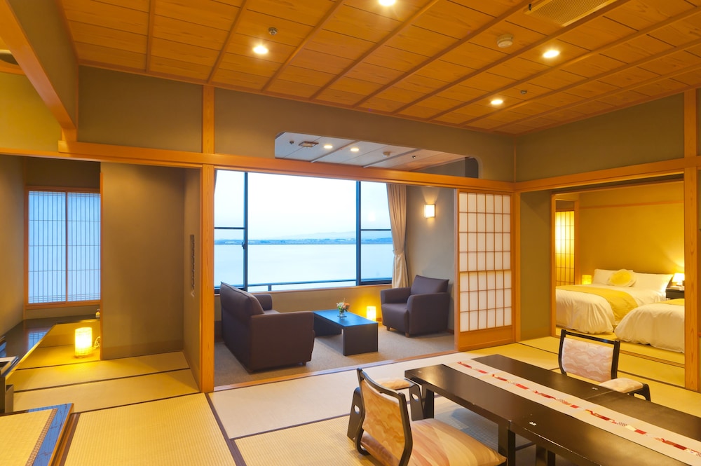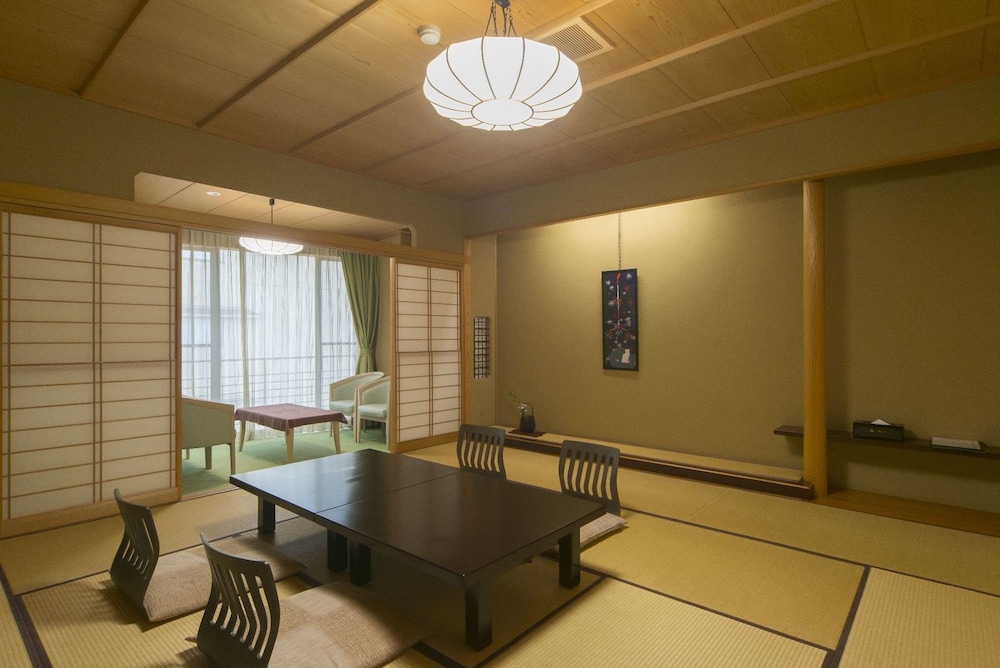 En Kaga, KOHANNOYADO MORIMOTO ofrece una espléndida ubicación en un lago, a pocos minutos de Akahodani Onsen y a unos kilómetros de Museo de Nieve y Hielo Nakaya Ukichiro. Este ryokan se encuentra cerca de Shibayamagata y de Museo del Sake Dainichi-zakari Sakagura Shiryokan.Habitaciones Te sentirás como en tu propia casa en una de las habitaciones con aire acondicionado y televisor de pantalla plana. El cuarto de baño con bañera y ducha independientes está provisto de bañera profunda y artículos de higiene personal gratuitos. Las comodidades incluyen caja fuerte y una zona de estar separada, además de un servicio de limpieza disponible todos los días.Servicios Para tus ratos libres, tienes instalaciones recreativas como aguas termales, discoteca y karaoke a tu disposición.Para comer Si tienes hambre, pasa por la cafetería. Apaga la sed con tu bebida favorita en el bar o lounge.Servicios de negocios y otros Tendrás periódicos gratuitos en el vestíbulo, caja fuerte en recepción y ascensor a tu disposición. Se ofrece un servicio de transporte desde la estación de tren gratuito.