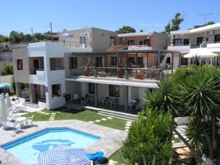Este apartotel esta situado en la zona de Kato Stalos, a solo 30 metros de la playa y a 3 km de la zona turistica de Platanias, donde los huespedes encontraran lugares para salir por la noche. El hotel se encuentra muy cerca de una gran variedad de restaurantes, tiendas y bares. Se encuentra a solo 7 km de La Canea y de su casco antiguo, en una zona tranquila ideal para familias y parejas. Falassarna esta a 40 km, Balos, a 45 km, la garganta de Samaria, a 50 km, y Elafonissi, a 70 km. El aeropuerto internacional de La Canea esta a unos 18 km del establecimiento.Se trata de un establecimiento familiar que pone un enfasis especial en la hospitalidad. El edificio es moderno y tiene un ambiente familiar. Este complejo de apartamentos de playa consta de un total de 28 alojamientos, incluidos 19 apartamentos y 9 estudios. En este establecimiento con aire acondicionado, los huespedes disponen de vestibulo con servicio de salida 24 horas, caja fuerte, servicio de cambio de divisas y sala de juegos. Hay sala de TV y los mas pequenos pueden quemar energias en el parque infantil. Los huespedes tienen cafeteria y bar a su disposicion, ademas de conexion a Internet WiFi. Pueden ademas utilizar el servicio de habitaciones y el servicio de lavanderia y tambien alquilar bicicletas en el recinto. Hay aparcamiento disponible para los que lleguen en coche.Este hotel de playa ofrece estudios y apartamentos de 1 o 2 dormitorios con un ambiente acogedor y agradable y todos ellos cuentan con su propio balcon o terraza. Todos los alojamientos tienen cuarto de bano privado con ducha-banera y secador de pelo, y ofrecen cama doble. Estan equipados con telefono de linea directa, TV via satelite, radio y caja fuerte (con cargo adicional). Cuentan ademas con cocina americana con nevera pequena y cafetera-tetera, y aire acondicionado y calefaccion regulables como equipamiento estandar.