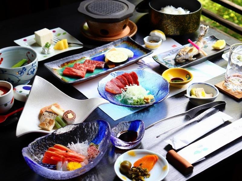 Enclavado en el corazón de Kurokawa Onsen, este encantador hotel se distingue por su icónica noria y habitaciones con vistas panorámicas al río. Doce habitaciones, incluyendo diez tradicionales habitaciones japonesas de estilo tatami y dos habitaciones híbridas japonés/occidental con camas, ofrecen comodidades modernas como aire acondicionado, inodoros con bidé, televisores, teléfonos, refrigeradores, cafeteras/teteras, secadores de pelo y artículos de aseo esenciales. Los huéspedes también pueden disfrutar de aguas termales al aire libre y aguas termales privadas reservadas. El restaurante del hotel ofrece una auténtica y refinada cocina japonesa de temporada, elaborada con ingredientes frescos de origen local.