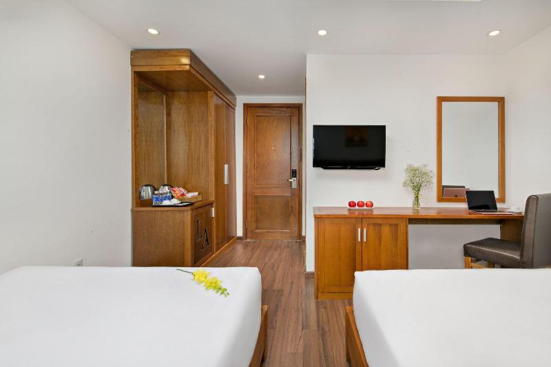 Alójate en La Beach Hotel en Da Nang (Son Tra) y estarás a 10 minutos a pie de Playa My Khe y Playa Pham Van Dong. Este hotel de playa se encuentra a 2, 3 km de Puente del río Han y a 9, 7 km de Montañas de Mármol. Aprovecha las comodidades que te ofrece el hotel, como acceso a internet inalámbrico de cortesía, televisión en una zona común y asistencia turística y para la compra de entradas. Tendrás a tu disposición servicio de tintorería/lavandería, recepción disponible las 24 horas y resguardo de equipaje. Por un cargo adicional, te ofrecemos traslado al aeropuerto ida y vuelta (disponible las 24 horas) y estacionamiento sin valet parking gratuito. Disfruta de una comida en el restaurante de La Beach Hotel o visita la cafetería. Y para terminar el día, tómate una copa en el bar o lounge. Se sirve desayuno buffet todos los días de 6:30 a 9:00, con cargo. Siéntete como en casa en una de las 33 habitaciones con decoración personalizada, que cuentan con minibar y Smart TV. Las habitaciones incluyen camas con colchones viscoelásticos. Disfruta de acceso a internet inalámbrico de cortesía y programación digital. Los baños disponen de ducha, artículos de tocador de cortesía y secadores de pelo.