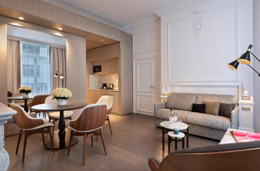 La Clef Champs Elysees Paris by The Crest Collection ofrece una experiencia boutique de lujo en el corazón de París, cerca de la emblemática avenida de los Campos Elíseos. Este hotel de 5 estrellas cuenta con suites elegantes y espaciosas, equipadas con Wi-Fi gratuito, aire acondicionado, cocina completa y diseño moderno. Entre sus servicios destacan spa, gimnasio y acceso exclusivo a experiencias locales. Perfecto para quienes buscan comodidad y sofisticación en la capital francesa.