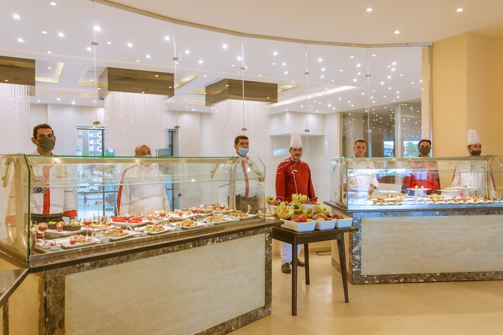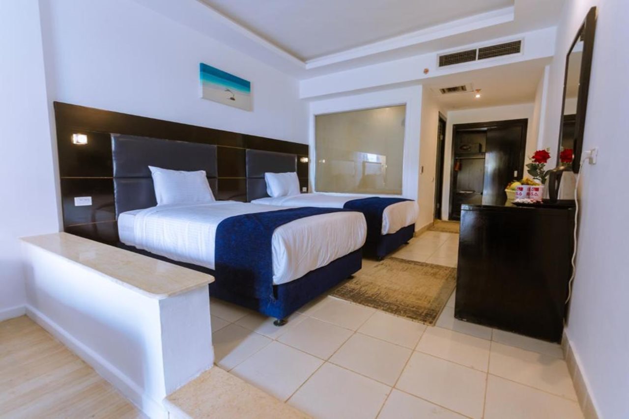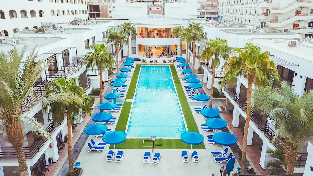 Facilities and services include an ATM, bar, currency exchange, gym, kid's club, restaurant, sauna, massage (extra charge), pool, and Wi-Fi.Rooms feature air-conditioning, mini-bar, hair dryer, TV, coffee/tea making facilities, telephoneIn case of choosing the option of "all inclusive":The All Inclusive-concept includes all meals (breakfast, lunch, dinner and snacks) and mealtime drinks such as soft drinks, beer, wine, water and alcoholic drinks, all of local brands. Drinks are served from morning until late evening (approx until 22.00 -24.00 hrs). Opening times vary between different hotels. In certain hotels the activities program is also included.Address 84517, Sheraton Rd, Hurghada 1, Red Sea Governorate, Egypt