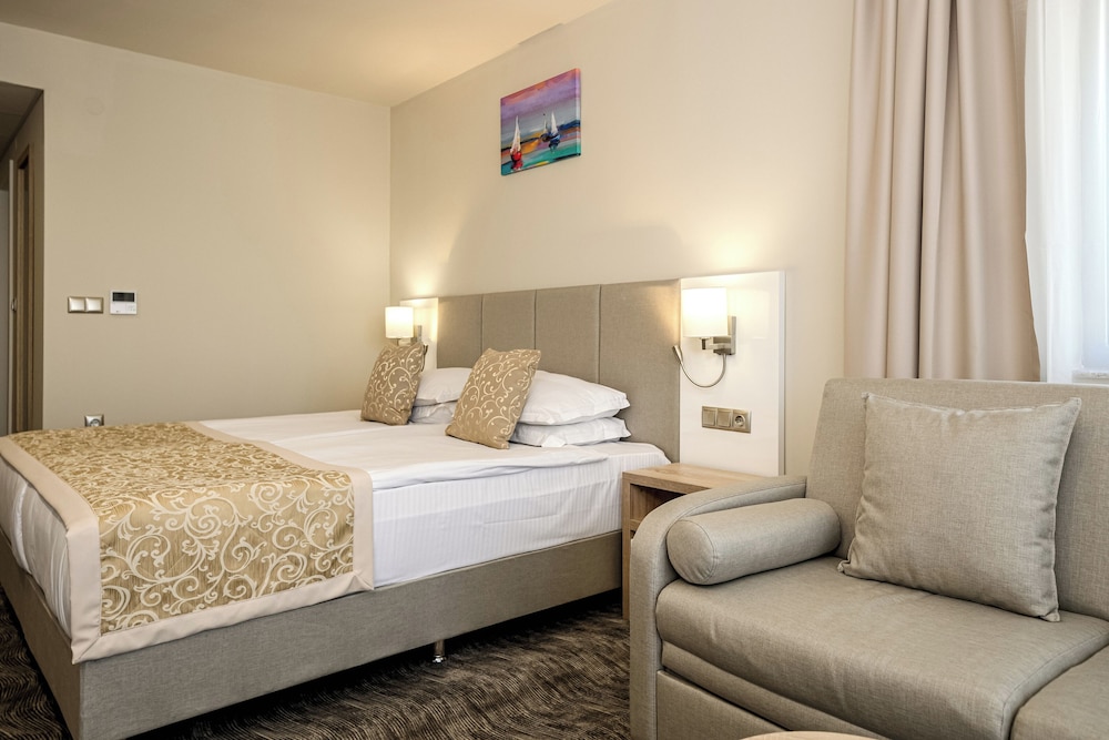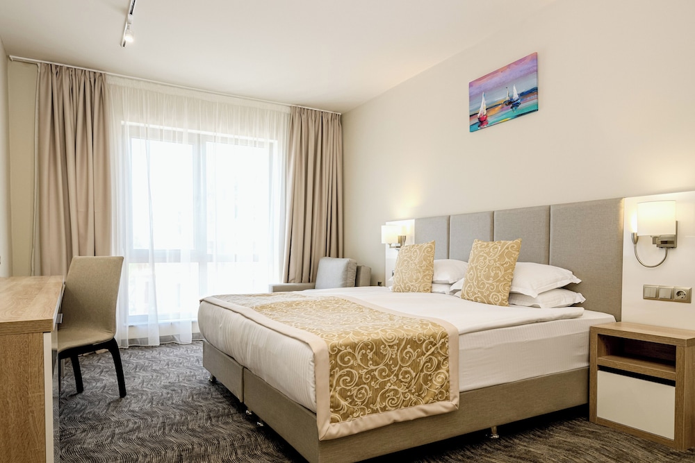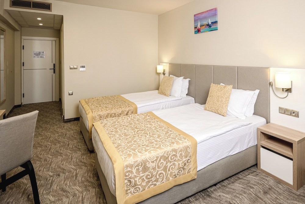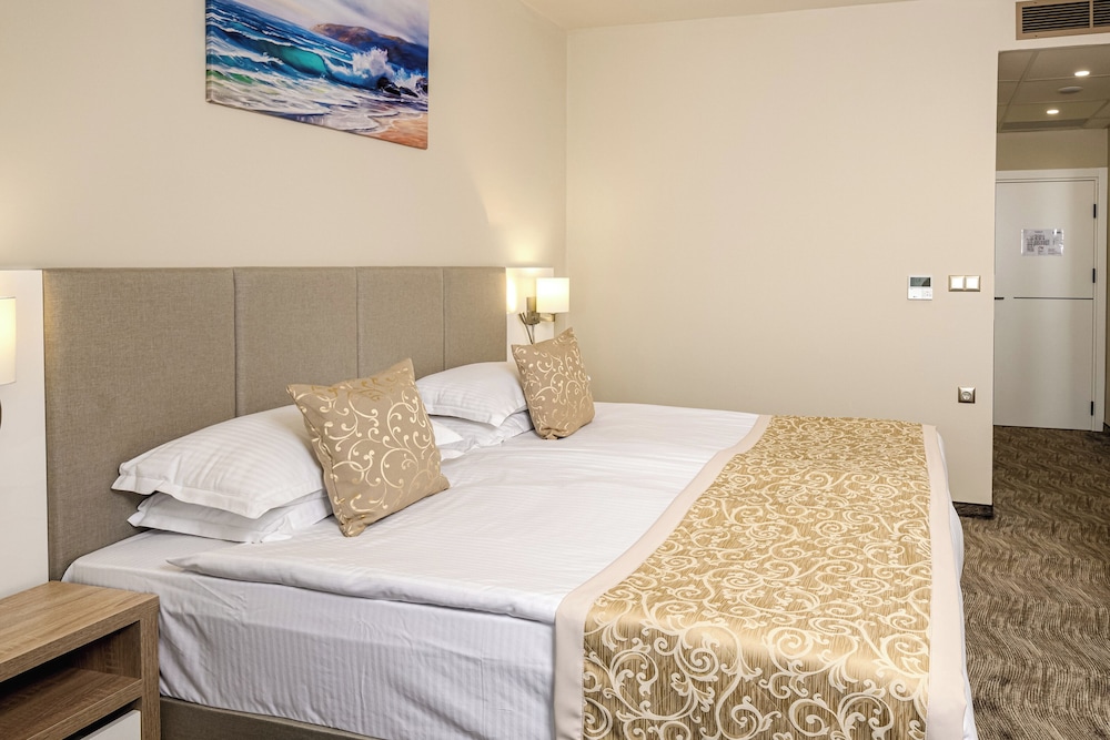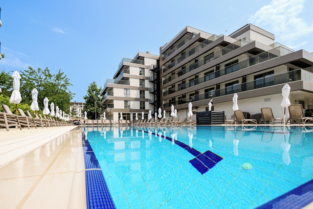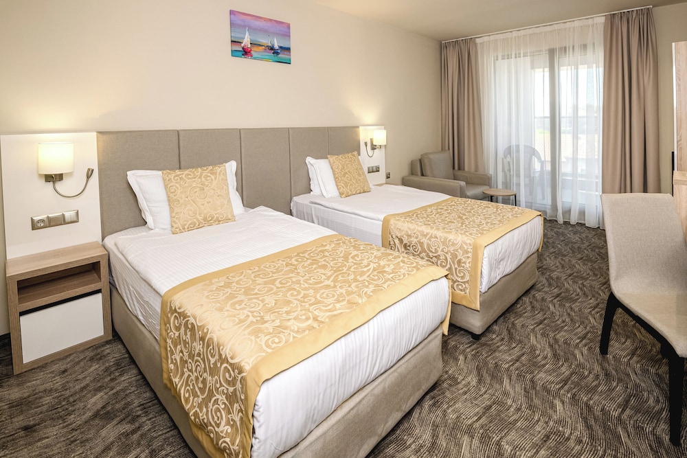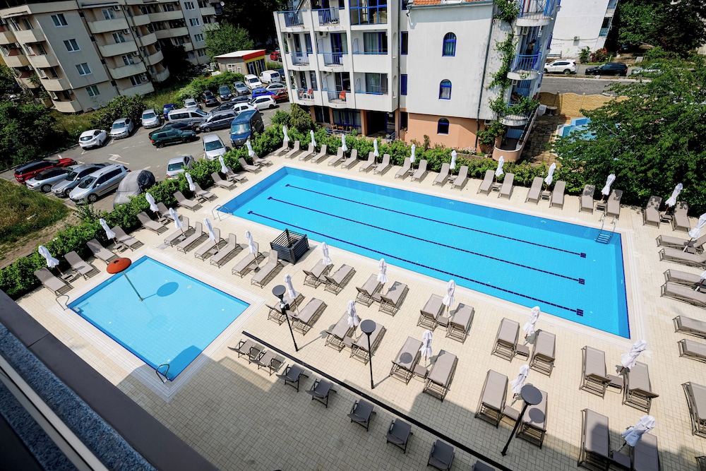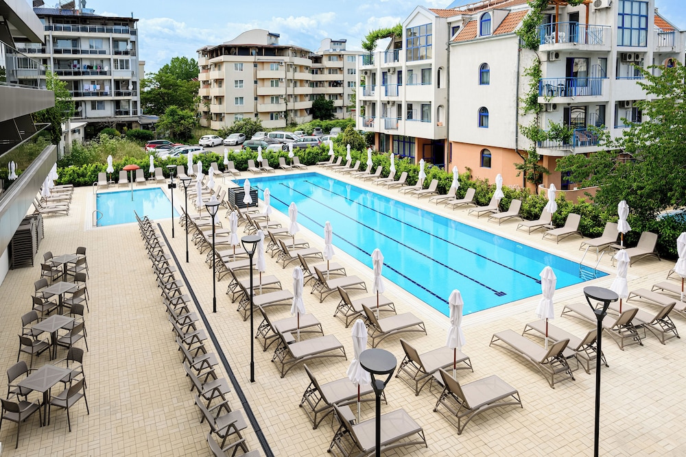 Las instalaciones y servicios incluyen recepción 24 horas, aire acondicionado, bar, aparcamiento (con cargo adicional), zona de juegos infantil, piscina infantil, servicio de tintorería (con cargo adicional), lavandería (con cargo adicional), restaurante e internet inalámbrico.Las habitaciones cuentan con aire acondicionado, caja fuerte, teléfono, TV y baño privado.Si elige la opción "todo incluido":El concepto de Todo Incluido incluye todas las comidas (desayuno, almuerzo, cena y aperitivos) y bebidas como refrescos, cerveza, vino, agua y bebidas alcohólicas, todas de marcas locales.Las bebidas se sirven desde la mañana hasta la noche (aproximadamente hasta las 22:00-24:00).El horario de apertura varía según el hotel.En algunos hoteles, el programa de actividades también está incluido.Dirección: Sunny Beach Resort, 8240, Bulgaria